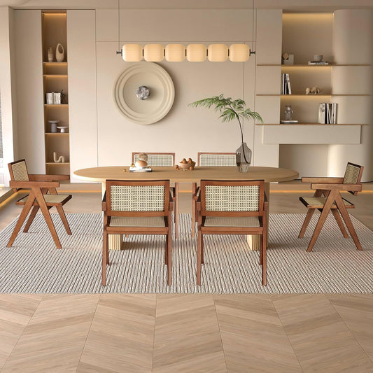 Rattan Dining Chairs Set of 6, Kitchen Chairs Cane for Dining Room, Black