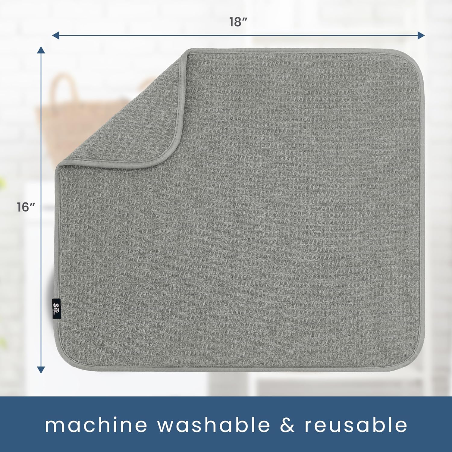 - One S&T INC. Microfiber Dish Dry Mat measuring 16 in. x 18 in.; kitchen mat for countertop absorbs up to 4 times its weight in water to keep your countertop dry, unlike a silicone dish drying mat
