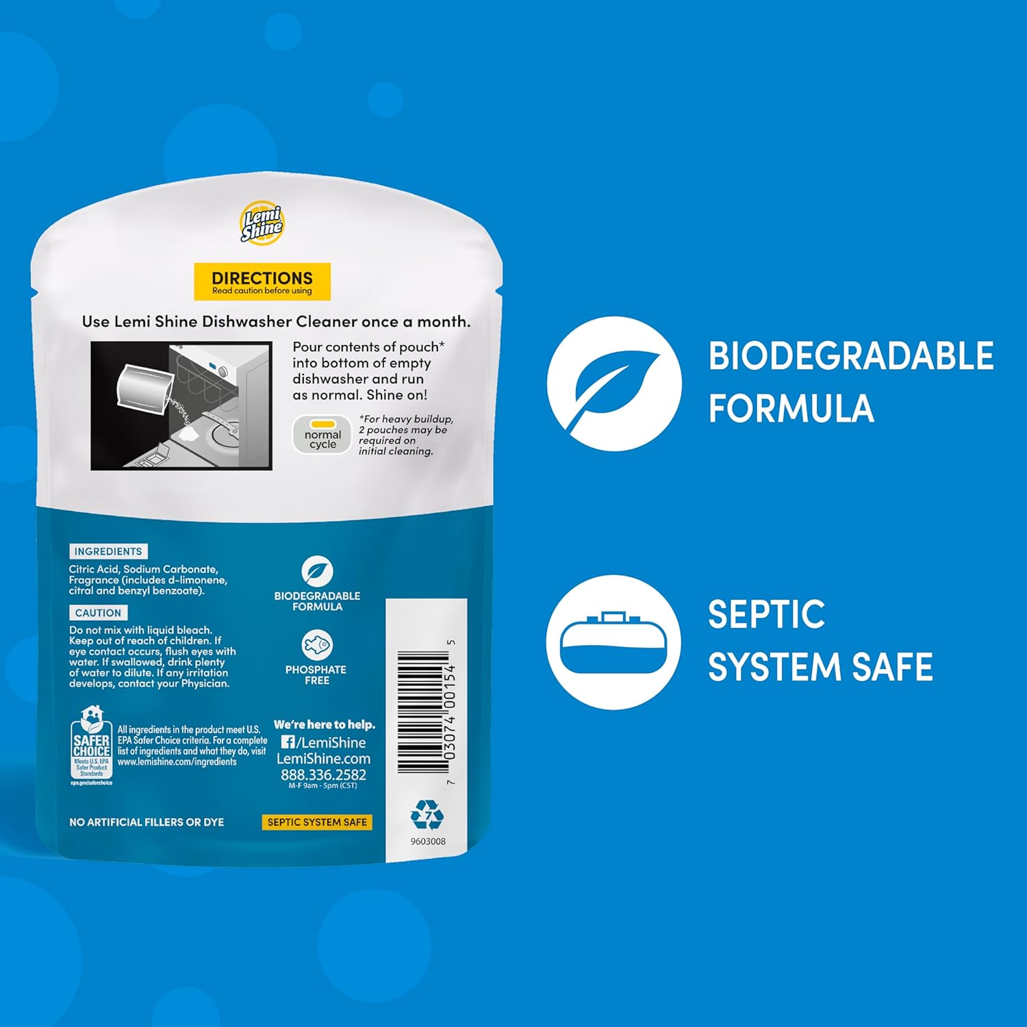 Lemi Shine Natural Dishwasher Cleaner - Dishwasher Cleaner and Deodorizer Powered by Citric Acid and a Natural Fresh Lemon Scent (1 Count)