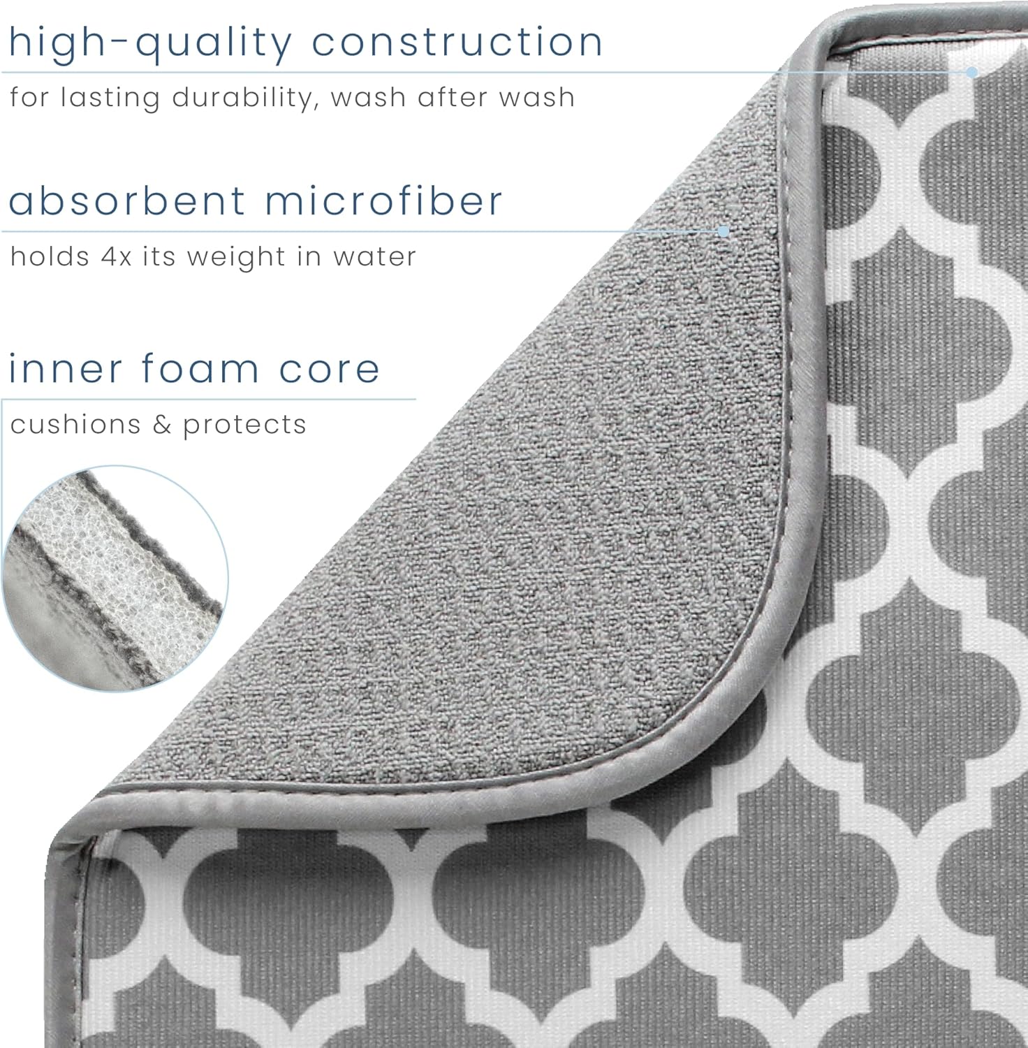 S&T INC. Dish Drying Mat, 16” x 18”, Absorbent Microfiber Kitchen Counter Mat, Dish Drying Pad for Dishes, Utensils, Pots and Pans, Large, White Trellis