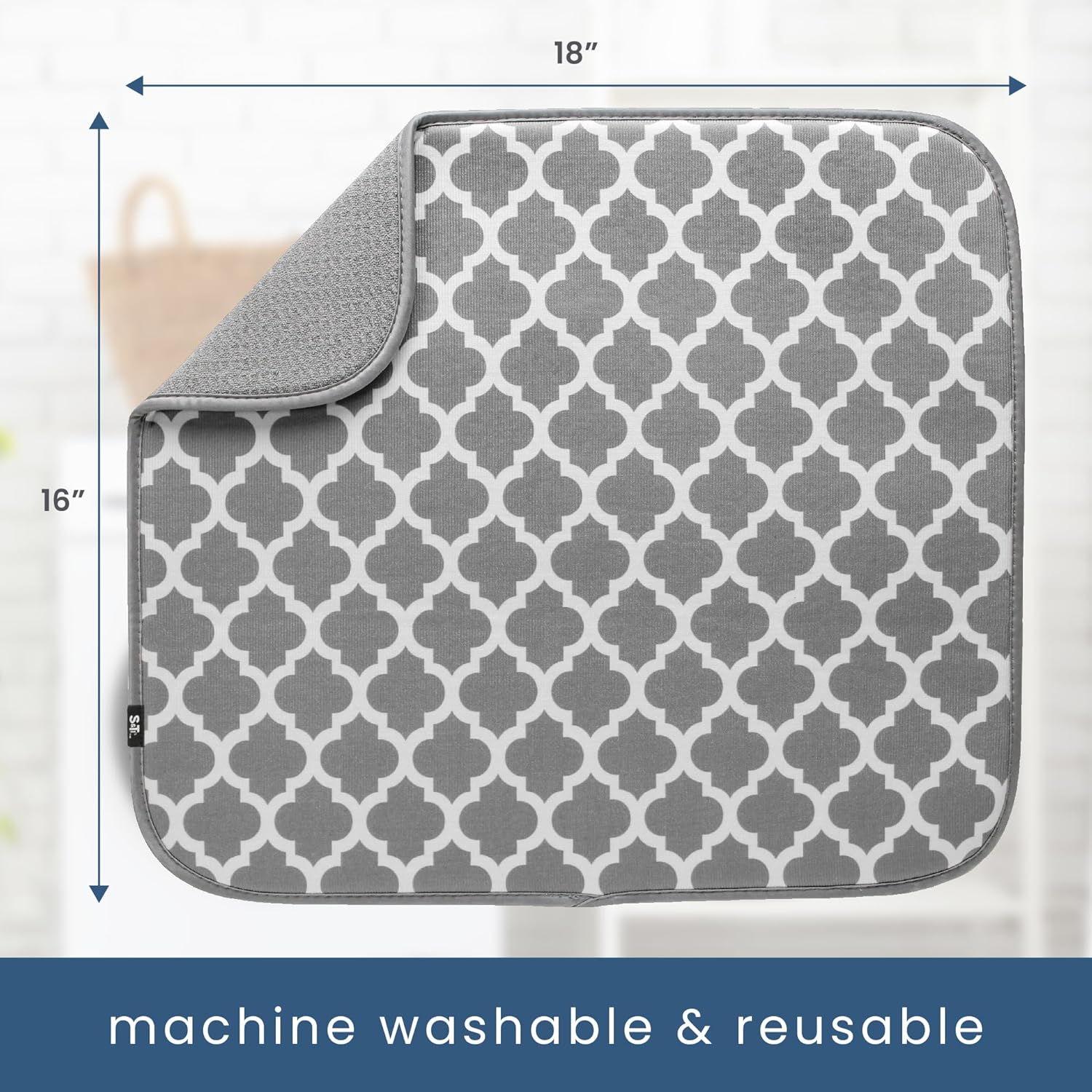 - One S&T INC. Microfiber Dish Dry Mat measuring 16 in. x 18 in.; kitchen mat for countertop absorbs up to 4 times its weight in water to keep your countertop dry, unlike a silicone dish drying mat
