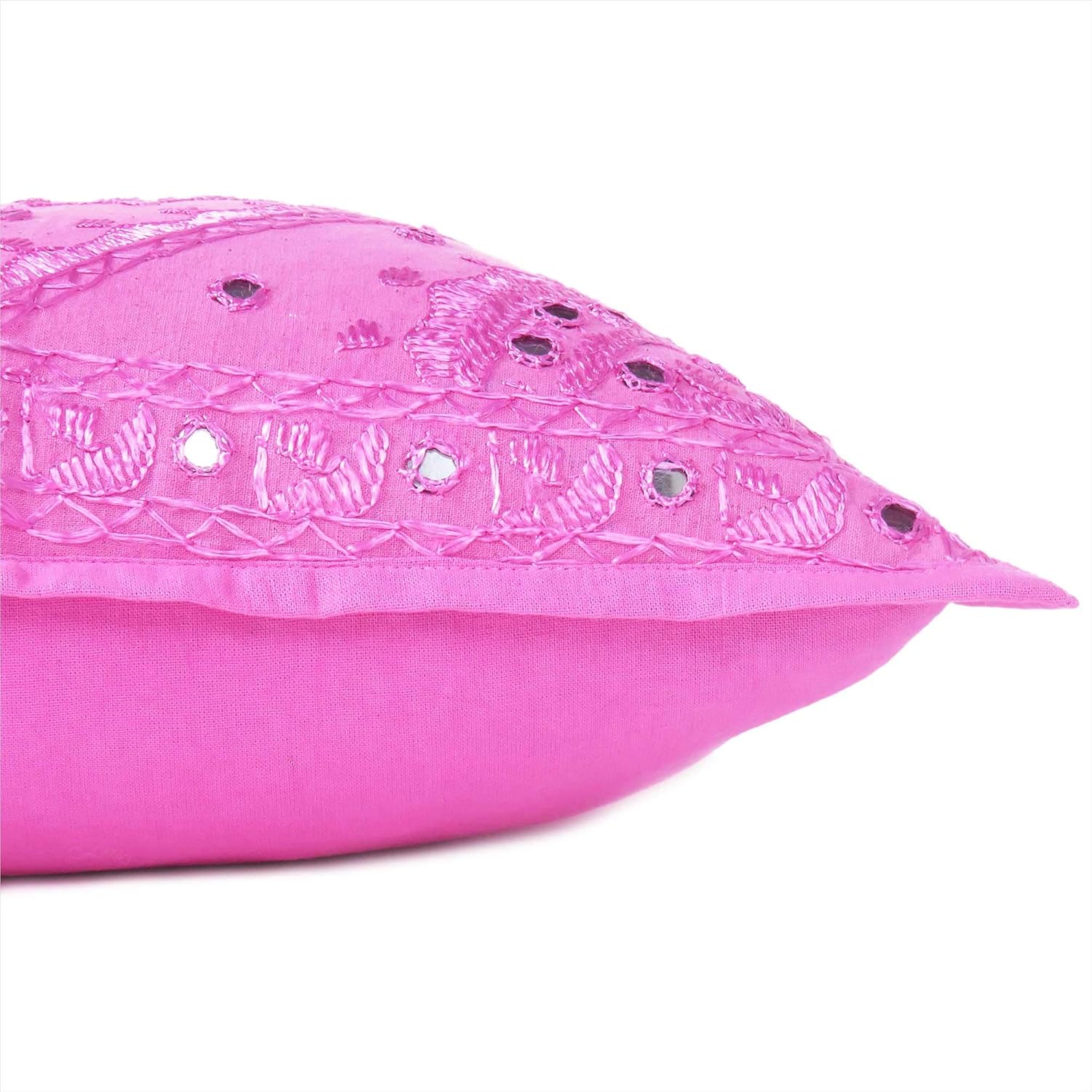 Eyes of India Embroidered Decorative Boho Throw Pillow Cover with Mirrors, Handmade Bohemian Accent Cushion Case for Sofa Couch Bedroom Living Room (Pink, 16" x 16")