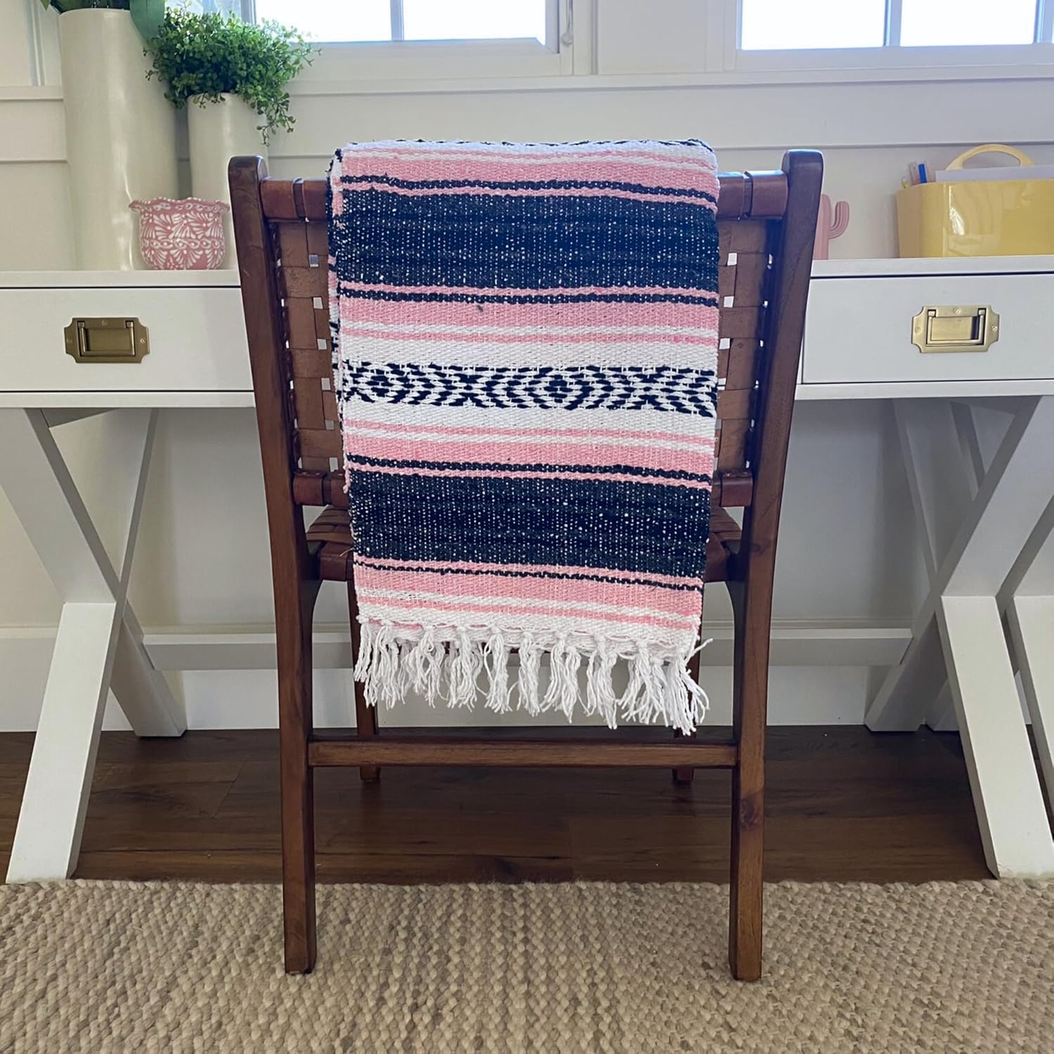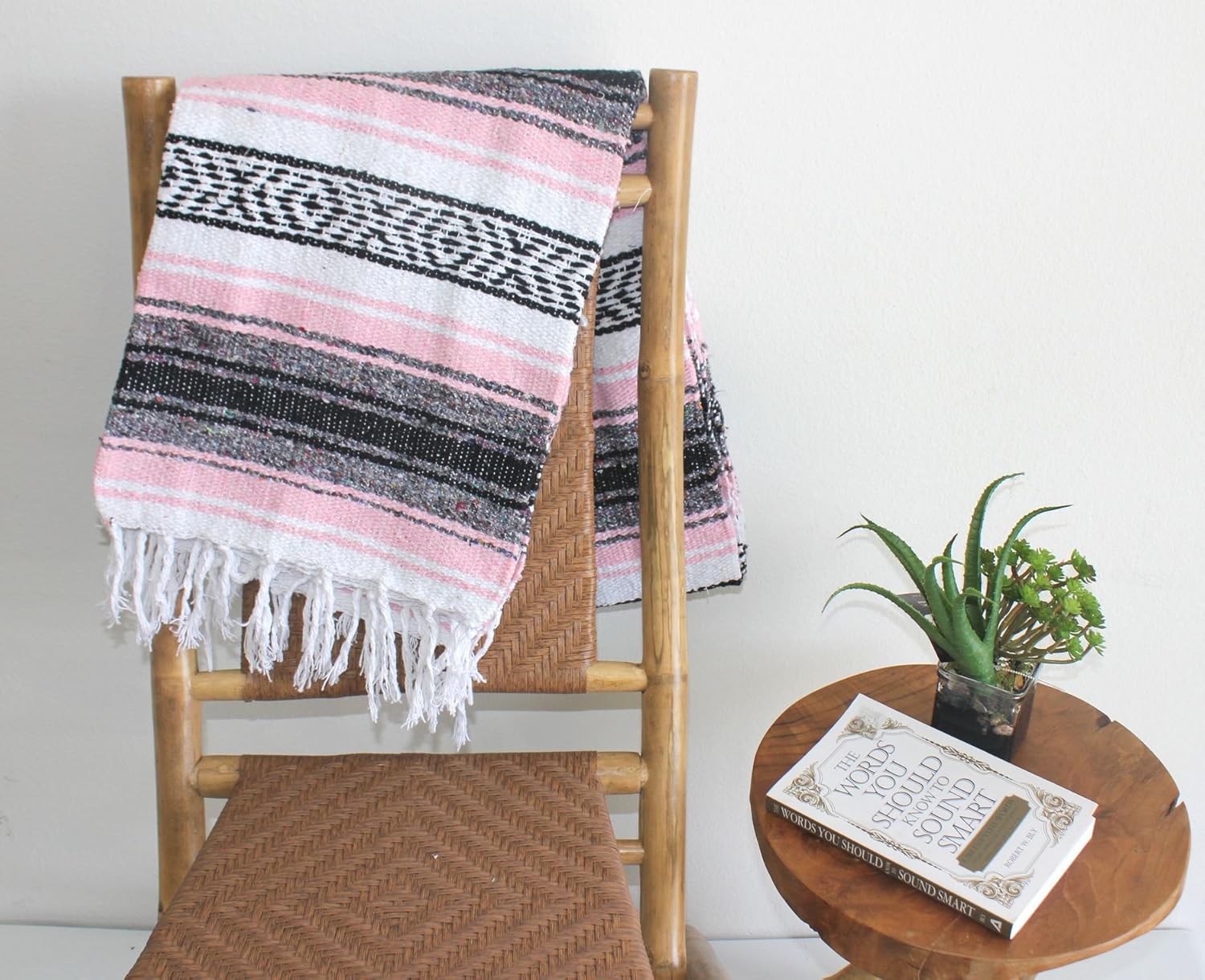 Del Mex Classic Mexican Blanket, Large Authentic Woven Falsa Throw (70"x50"), Artisan Southwest Décor for Beach, Yoga, Outdoors (Pink)