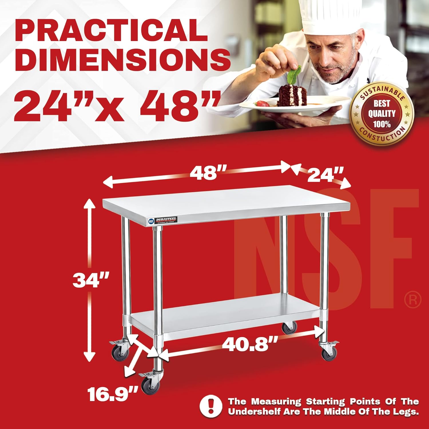 - Versatile Sizing: DuraSteel's stainless steel carts come in various sizes and four braked casters, meeting your needs whether you're BBQ grilling outdoor kitchen or using them indoors