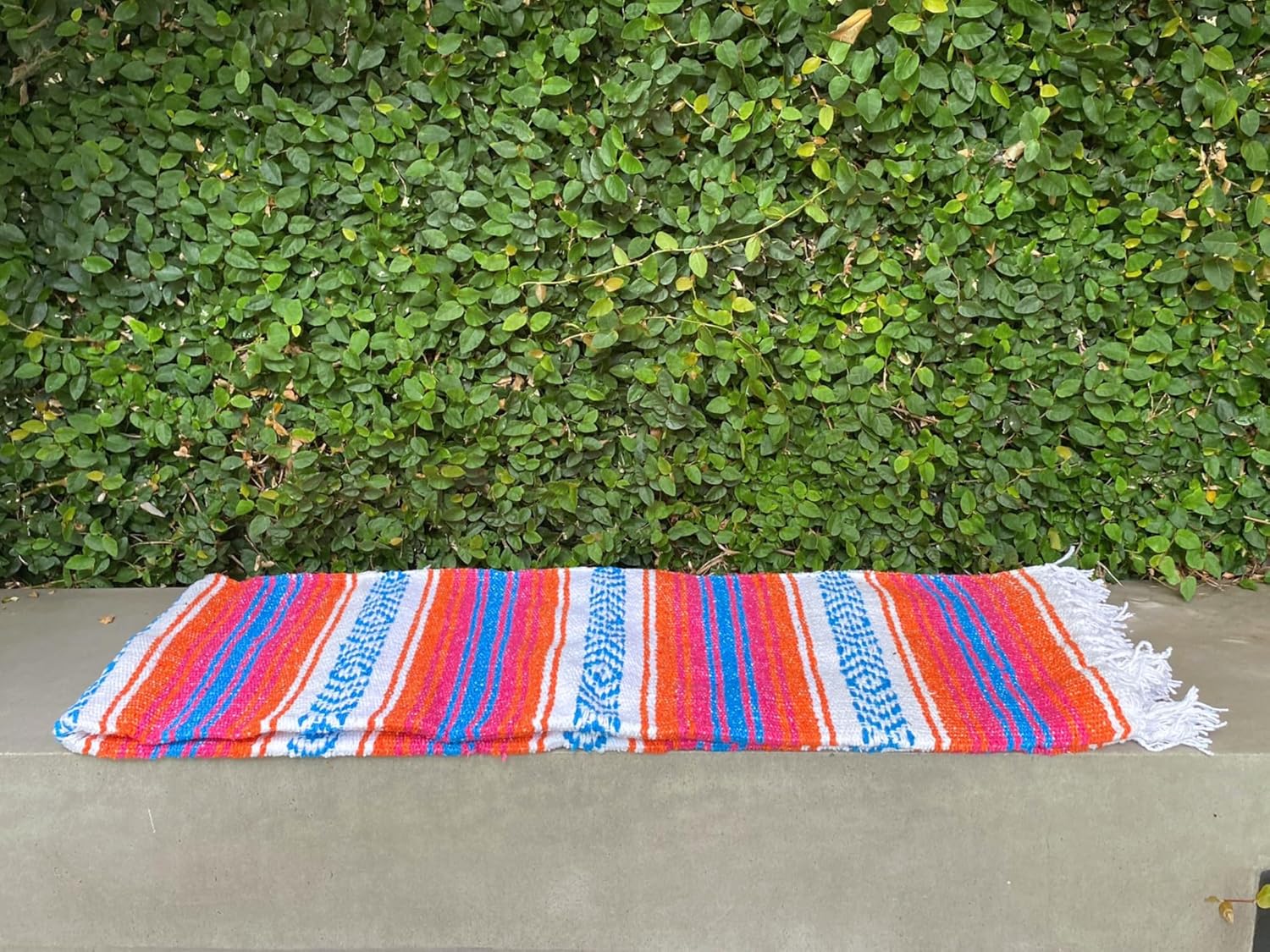 Del Mex Classic Mexican Blanket, Large Authentic Woven Falsa Throw (70"x50"), Artisan Southwest Décor for Beach, Yoga, Outdoors (Orange/Pink/Blue)