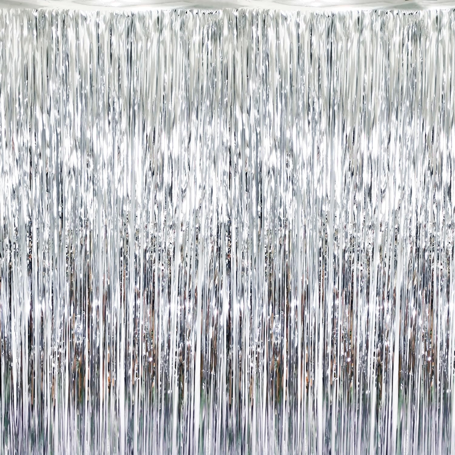 - Package Includes:5 pack silver foil fringe curtain,3.2 ft x 8.2 ft each,suitable for hanging on a door or coverage a wall fully