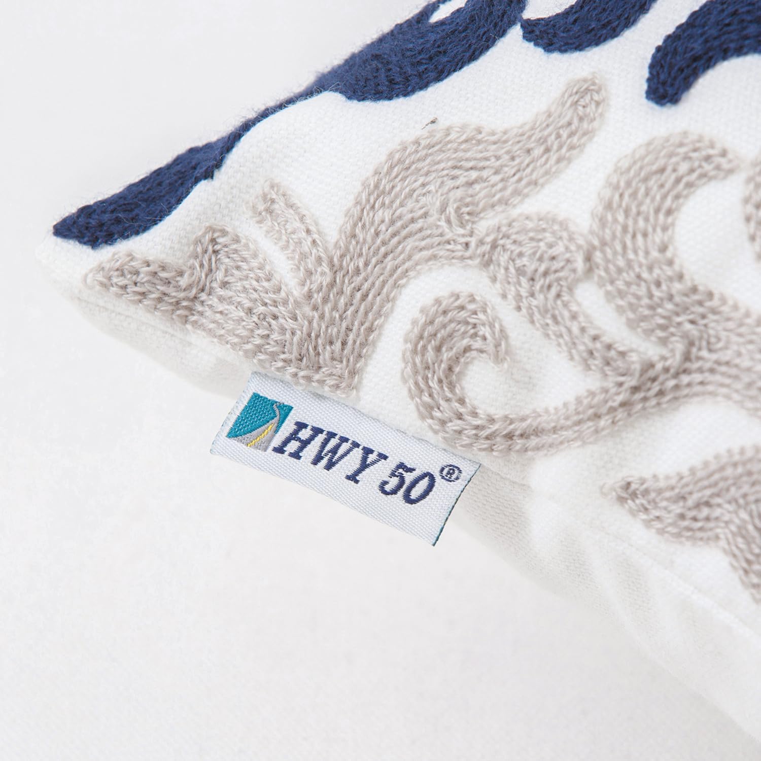 HWY 50 Navy Blue Decorative Throw Pillow Covers 18x18 Inch (1 Piece), Embroidered Cotton Farmhouse Cushion Cover Pillow Case for Sofa Couch Living Room Bed Bedroon, Floral Geometric