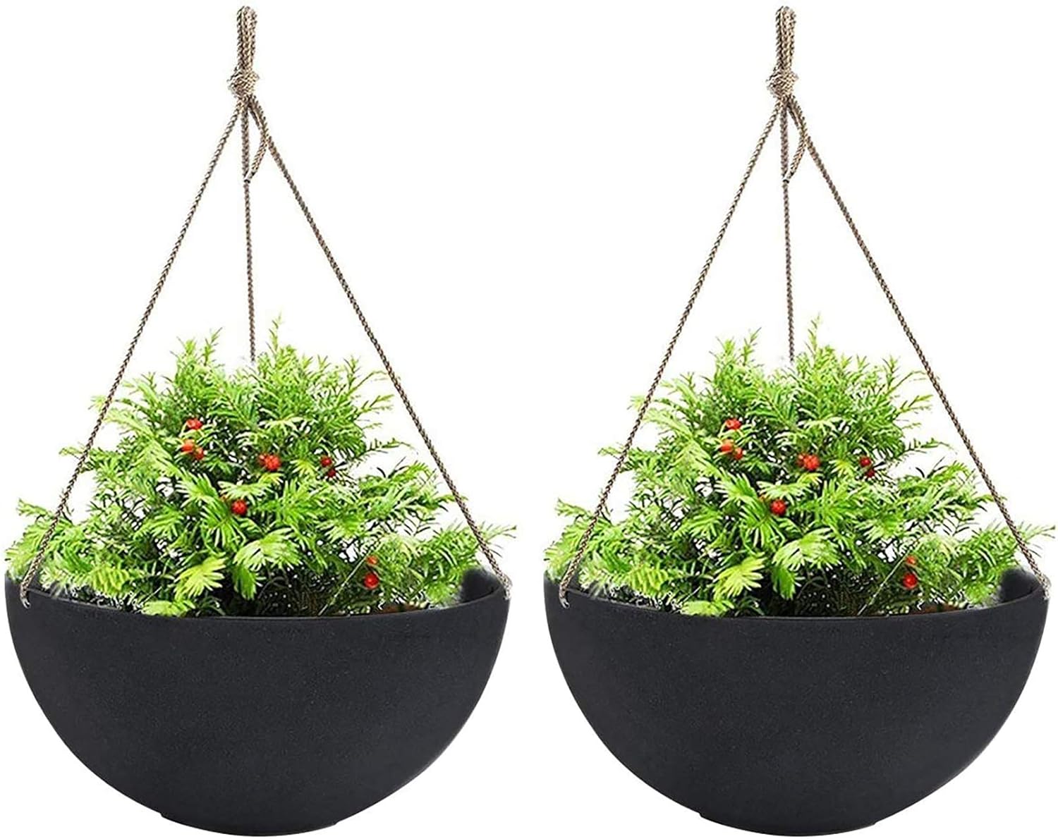 - DURABLE MATERIAL & ADJUSTABLE ROPES - Made from recycled plastic and natural stone powder, these planters have a thick wall and concrete textured finish but are still lightweight for moving around. The triple ropes can bear up to 20kg (44 lbs) of weight, this set also comes with 2 hooks for easy hanging up.