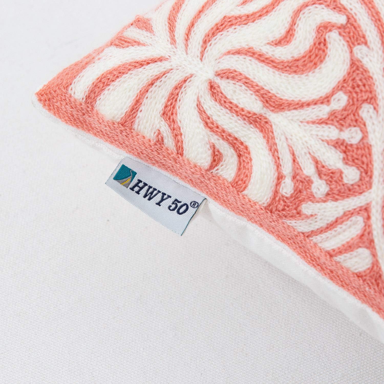 HWY 50 Pink Decorative Lumbar Pillow Cover Rectangle 12x20 Inch (1 Piece), Embroidered Cotton Farmhouse Cushion Cover Pillow Case for Sofa Couch Living Room Bed, Minimalist Floral
