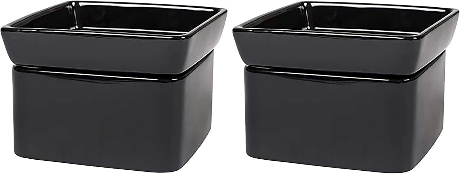 Elanze Designs Glossy Black Ceramic Stoneware 2-in-1 Jar Candle and Wax Tart Oil Warmer - 2 Pack