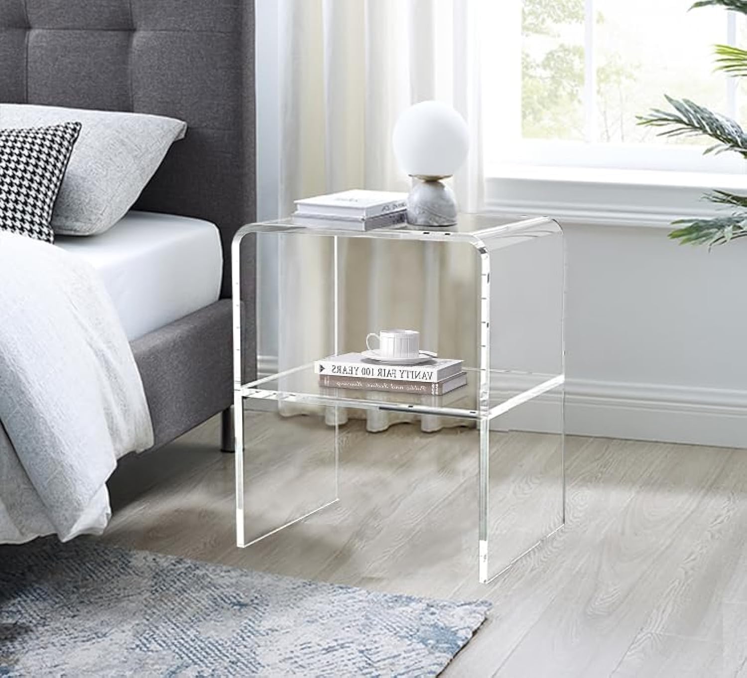ONELUX 1626 Acrylic Bedside nightstand with Additional Shelf,Lucite Occasional Sofa Tables, Clear
