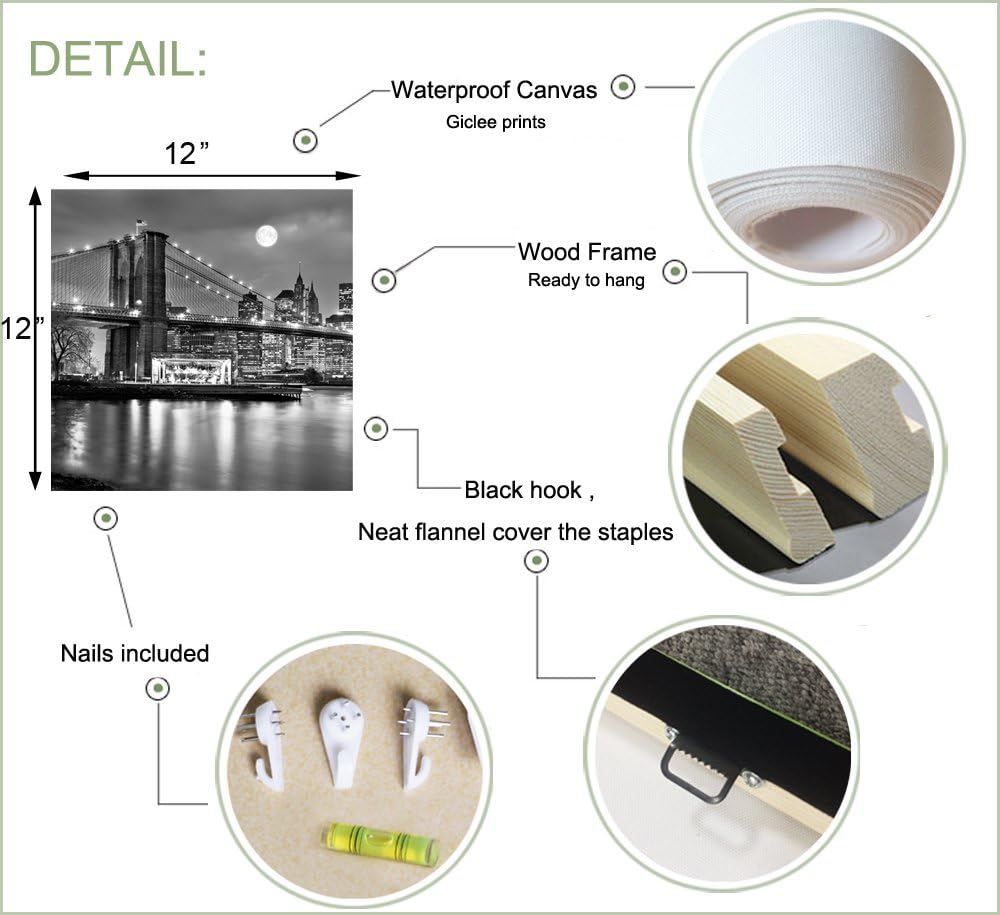 - Each panel canvas art has a black hook already mounted on the wooden bar ready to hang out of box