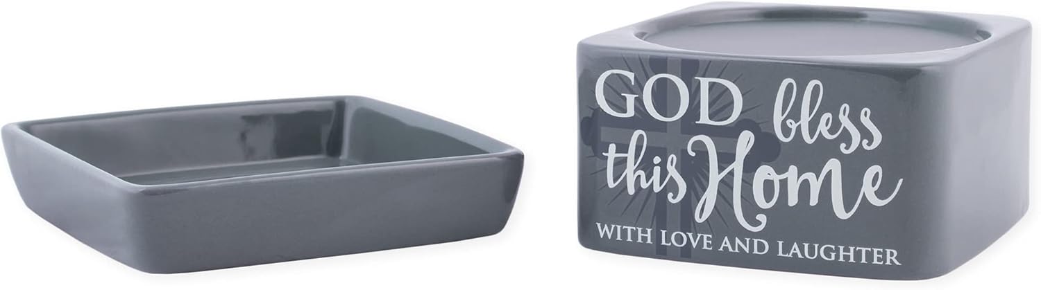 God Bless This Home Love Grey Stoneware Electric 2-in-1 Jar Candle and Wax Tart Oil Warmer