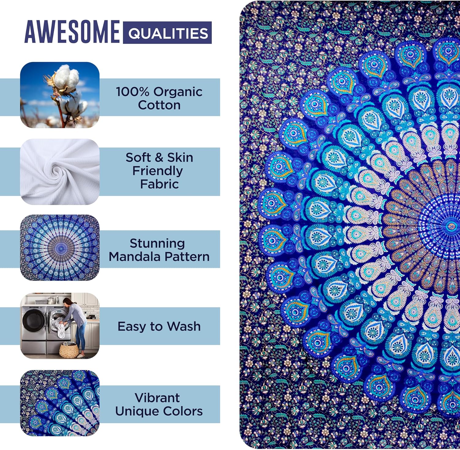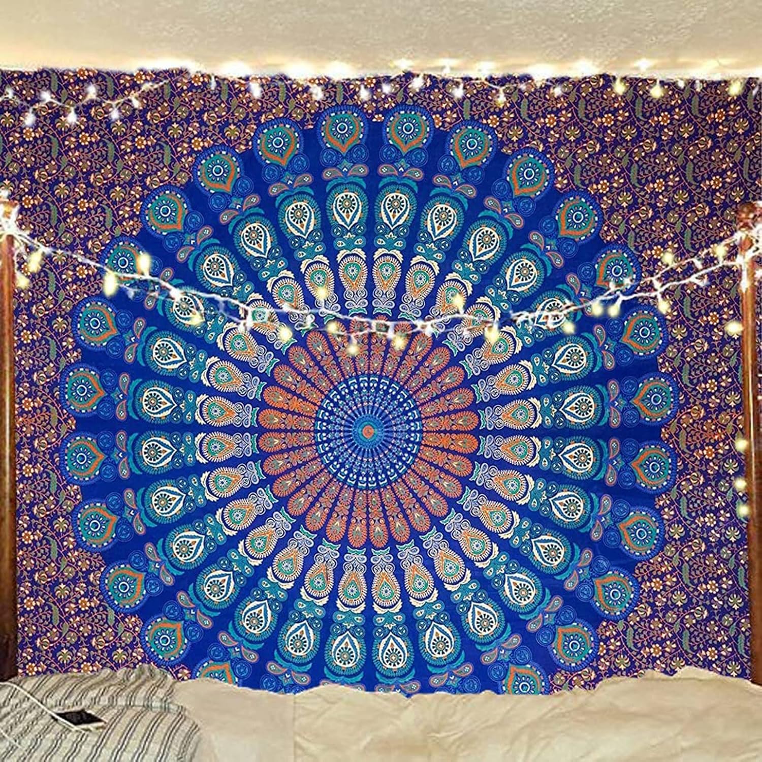 - MATERIAL & SIZE : Mandala boho Tapestry is made of 100% cotton fabric, made and printed in India, With delicate hand sewing, easy to hang, the edges are neat and finished and used for both indoor and outdoor purpose, size QUEEN 210 X 220 CMS