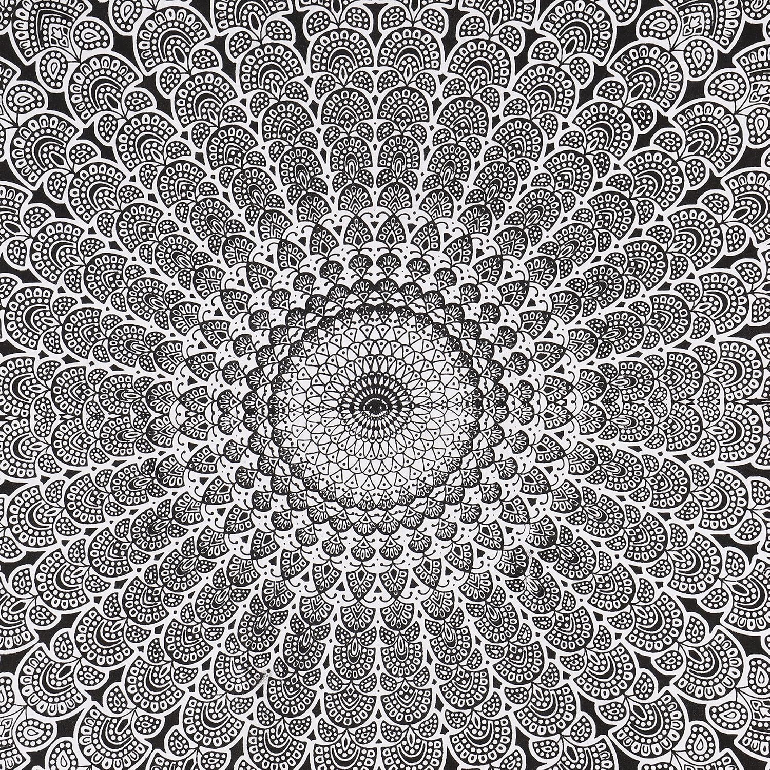 Bless International Handmade Indian hippie Bohemian Psychedelic Peacock Mandala Wall hanging College Dorm Beach Throws Table Cloth Bedding Tapestry (Black White, Twin(54x72Inches)(140x185cms))