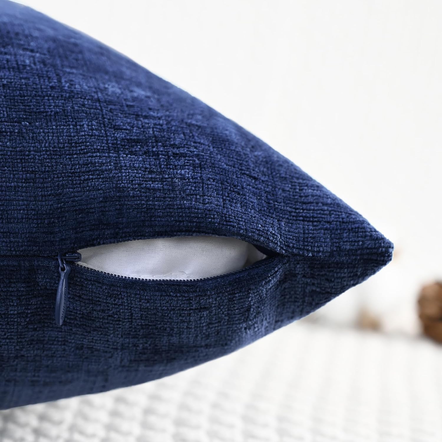 CaliTime Throw Pillow Covers Decorative 18 X 18 Inches Pack of 2 Cozy Chenille Cushion Cases for Couch Sofa Bed Living Room Home Navy Blue