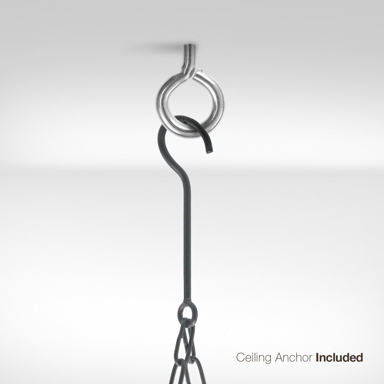 - EASY TO ASSEMBLE — Minimal assembly required with quick set-up — Package includes grid rack with 2 hanging chains, 10 pot hooks, and mounting hardware — Made of metal with powder-coated finish — Beautiful oval frame for stylish look — Complements most light fixtures, appliances, cookware, and design interiors — Measures approximately 31.50" L X 16.50" W X 21" H