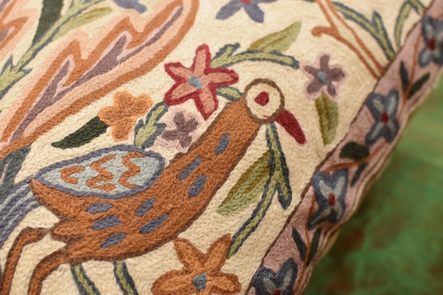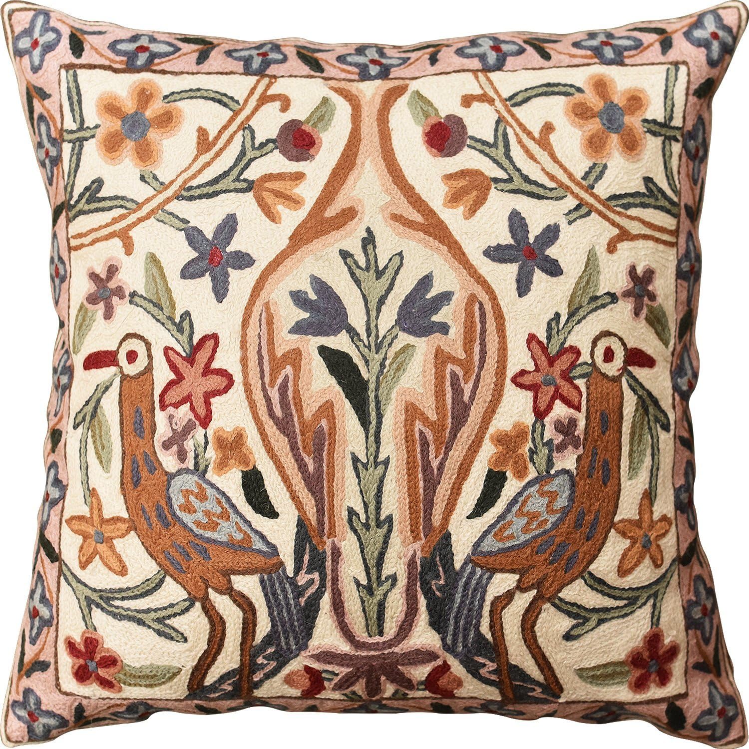 Tree of Life Pillow Cover - Crane Cream Floral Outdoor Pillows | Suzani Cushions | Modern Floral Cushion Hand Embroidered Shams Wool Size - 18x18