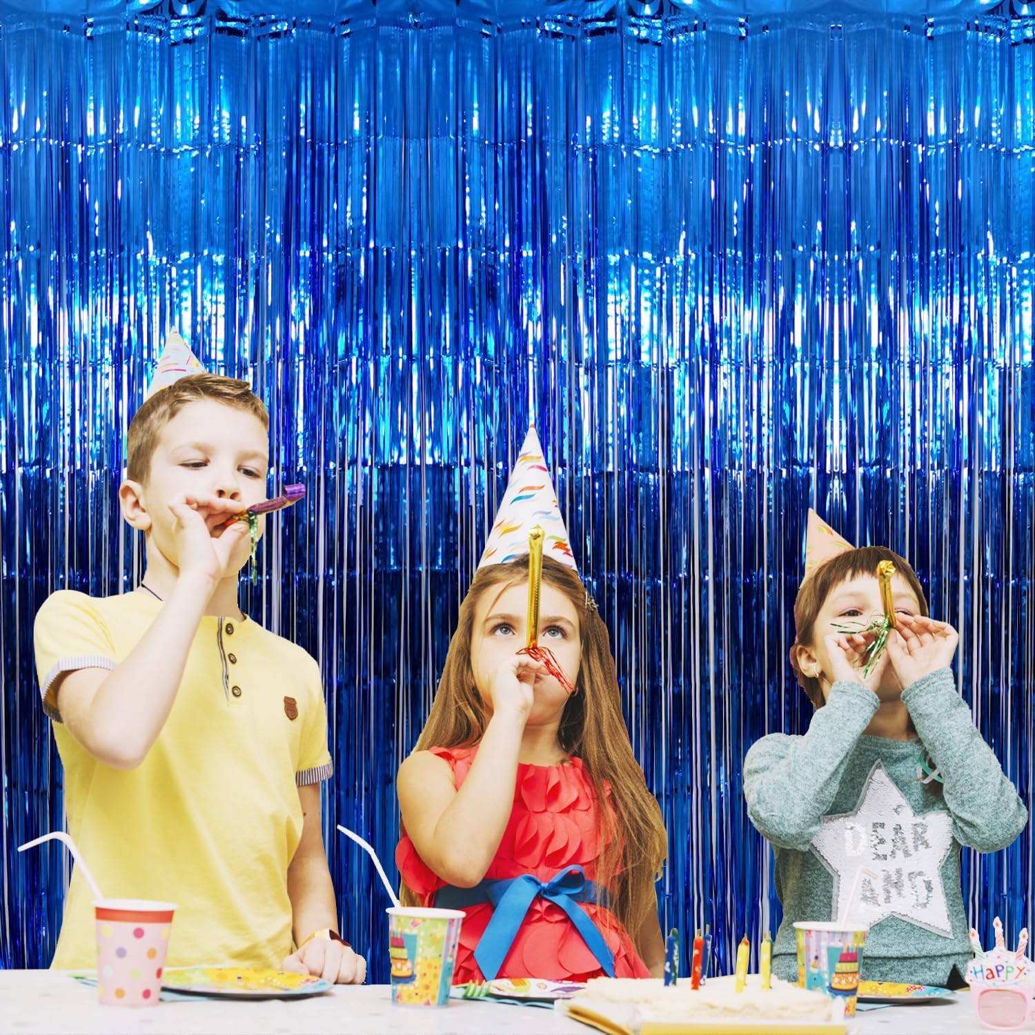 - Package Includes:5 pack navy blue foil fringe curtain,3.2 ft x9.8 ft each,suitable for hanging on a door or coverage a wall fully