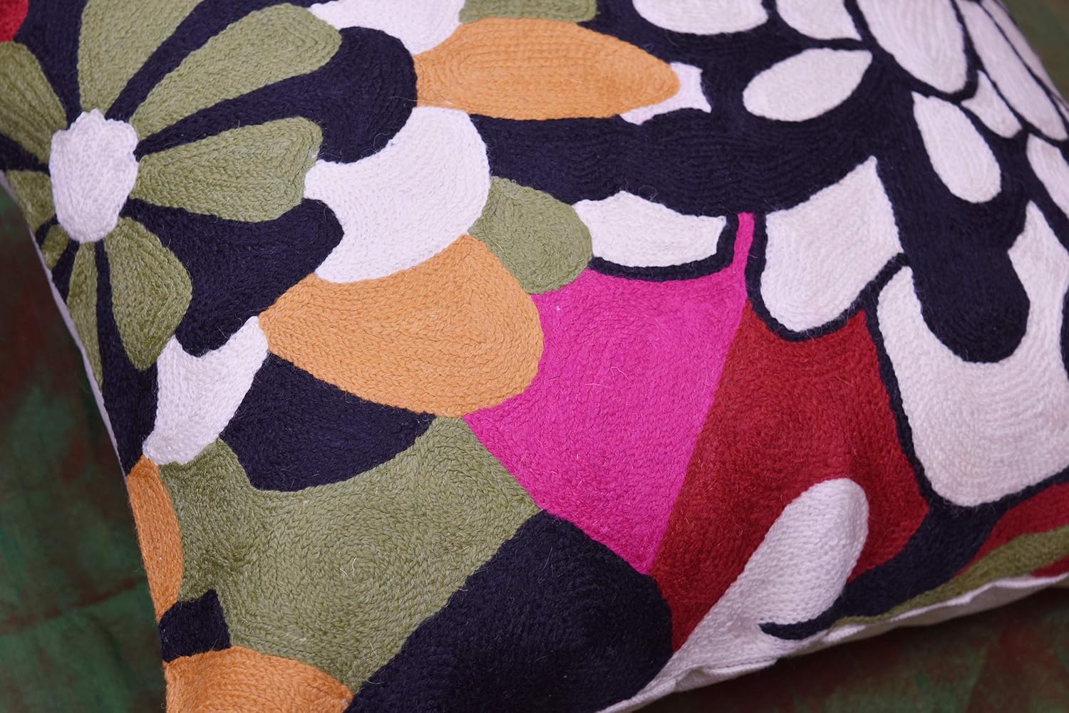 - ๐ FLORAL THROW PILLOW COVER - HAND EMBROIDERED: These colorful flower pillows are inspired from contemporary modern floral art designs and are hand embroidered in soft wool to perfection, stitch by stitch, by the finest artisans, creating an extraordinary all modern floral design pillow for your home decor. A close-up view of this all modern flower cushions allows you to see the amazing fine chain-stitch hand embroidery that covers the whole front side of this floral pillowcase.