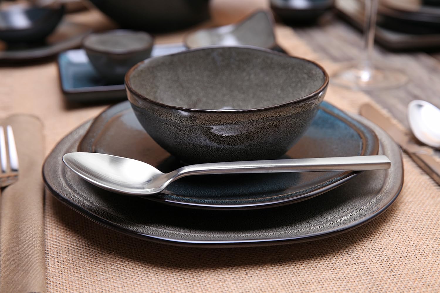 - Brushed stainless steel: The Arezzo set with knives, forks, spoons, dessert forks, and teaspoons in brushed tones adds elegant charm to make every gathering memorable