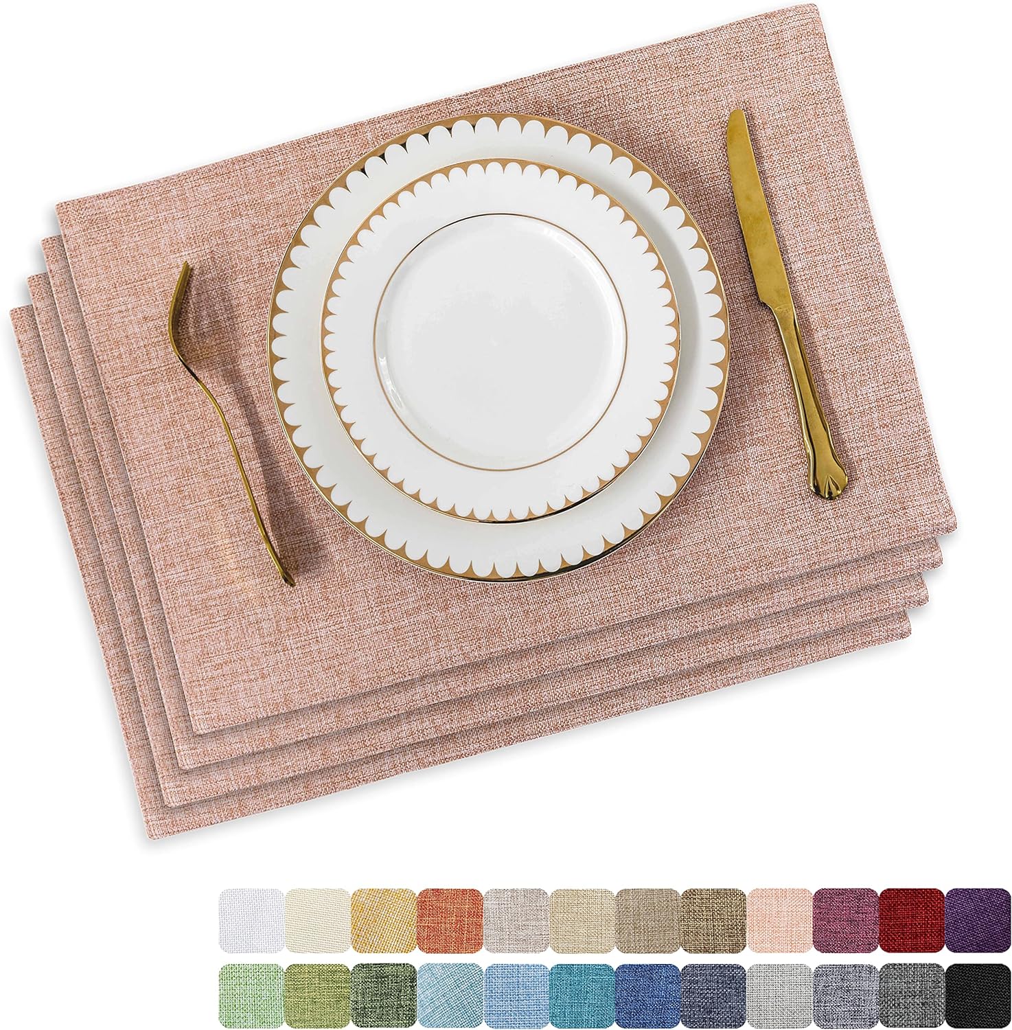 Home Brilliant Placemats Set of 4 Heat Resistant Dining Table Place Mats for Kitchen Table Party Dinner Decorations, 13 x 19 inches, Apricot Pink