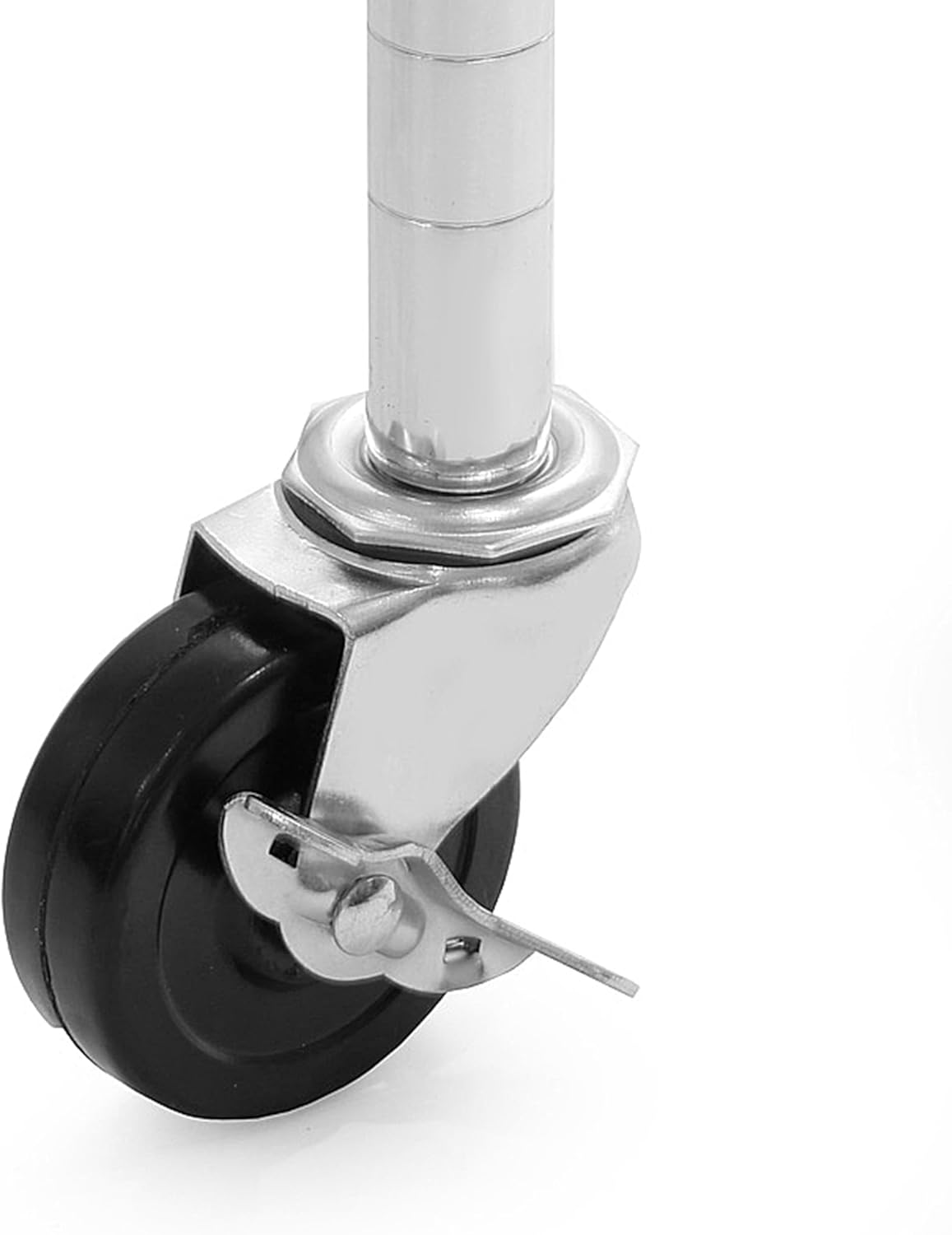 - What's in the Box? 5 shelves (24" x 18"), 4 pairs of poles (1" diameter), 4 wheels (3" diameter), 4 leveling feet, 20 slip sleeves