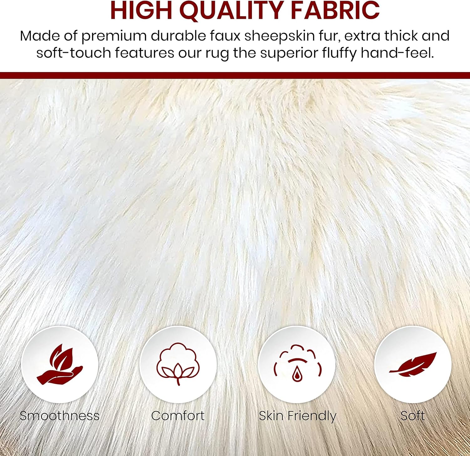 - ULTRA SOFT TOUCH FAUX FUR RUG: The soft materials of this shag rug is easy to clean, cozy on your feet as you walk, and make a perfect complement to your home with this rug. The collection features soft feeling sheepskin rug acrylic yarns furry rug that makes it easy to get cozy and delightful to touch. Faux sheepskin rug ensures its good durability and comfortable touch.