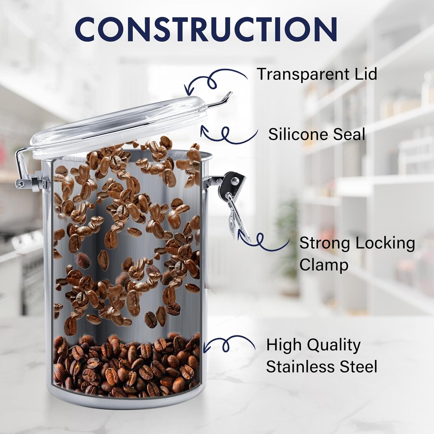 - Safety --- ENLOY airtight canister is made of good quality 410 stainless steel, excellent rubber seals and clasps. It is safe for everyday use. The BPA free silicone gasket have no smelly odour in the process of using.