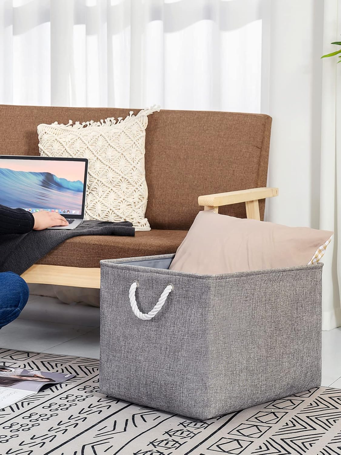 - SMALL STORAGE BIN & PROFESSIONALLY & PRACTICAL - 20.5Lx15.7Wx13.8H; TheWarmHome cube storage bins provide a solution to most needs: organizing and storing baby products,clothes,shoes,kid’s toys,pet products, toiletry storage, laundry,towel, blanket, bedsheet, sport gears, tissue,hats, scarves,socks,keys or other small items.can be used in bedroom, living room, study room,rest room,bathroom, kitchen,office,shelf, closet and cabinets.excellent choice for keeping your space nice, tidy and organized