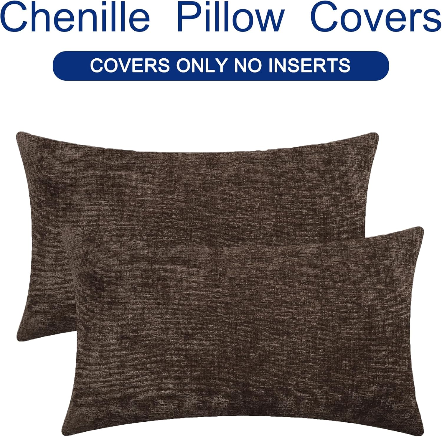 CaliTime Throw Pillow Covers Decorative 12 X 20 Inches Pack of 2 Cozy Chenille Cushion Cases for Couch Sofa Bed Living Room Home Coffee