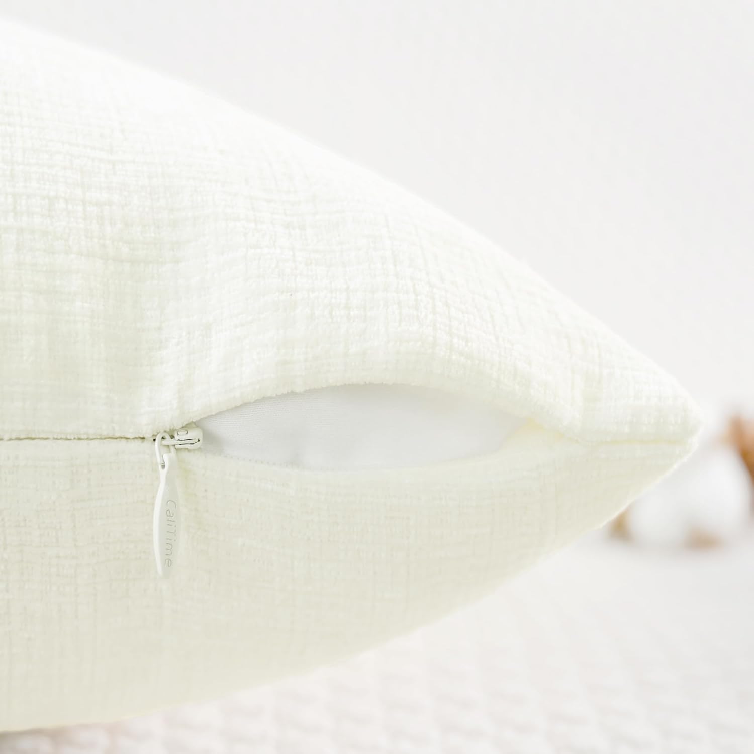 CaliTime Throw Pillow Covers Decorative 22 X 22 Inches Pack of 2 Cozy Chenille Cushion Cases for Couch Sofa Bed Living Room Home Cream