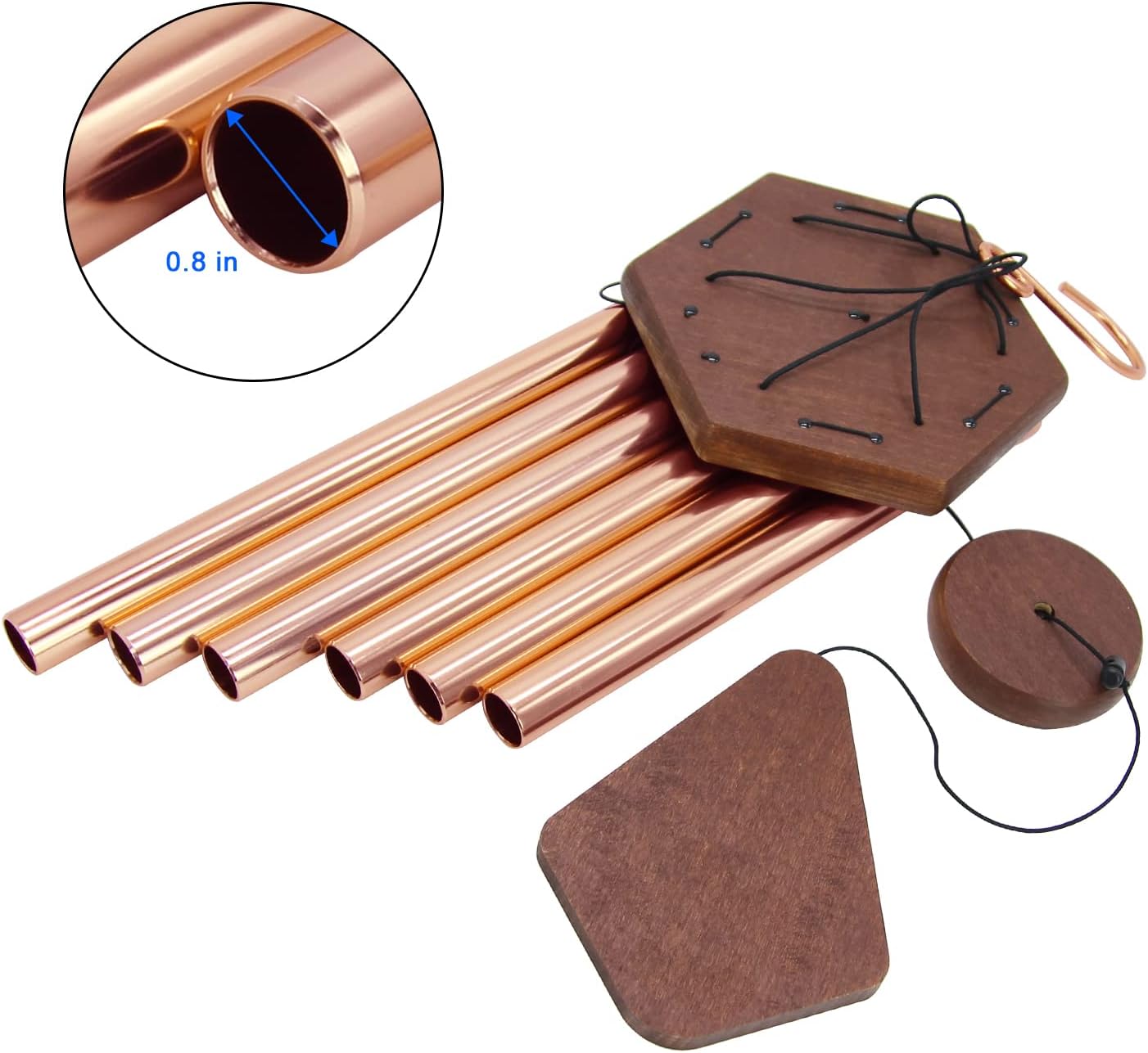 - ♪Wind Chimes Outdoor- 30'' is the best size for your Outdoor and Indoor Decor. This decorative chime comes with a stronger metal hook, easily to hang. The longest tube is 14.3''. 6 aluminum powder-coated tubes are hand-tuned by our professional tuning experts to achieve a superior musical performance. Heavy duty nylon cording high density beech wood striker,made from FSC-Certified wood, for a clear tone and resonances. Thick tubing wall creates a longer lasting deep tone. The sound is soft, deep tone and rela