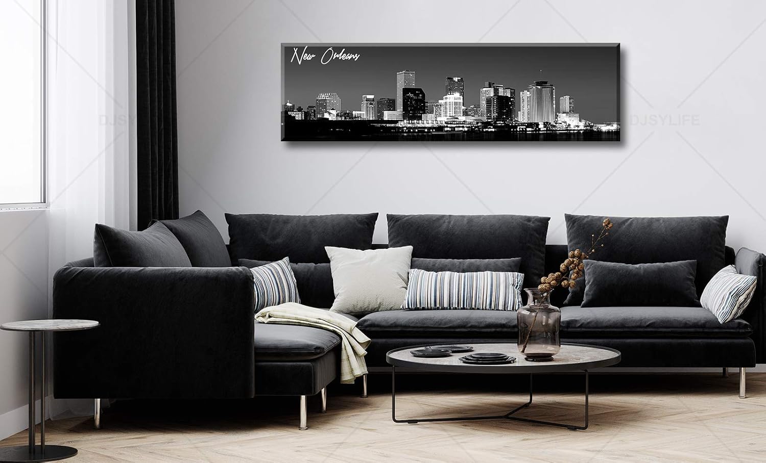 DJSYLIFE New Orlean Canvas Wall Art Decor City Skyline Pictures Poster Artwork Black and White Panorama Cityscape Painting for Bedroom Office Living Room Decoration Ready to Hang 13.8"X47.3"