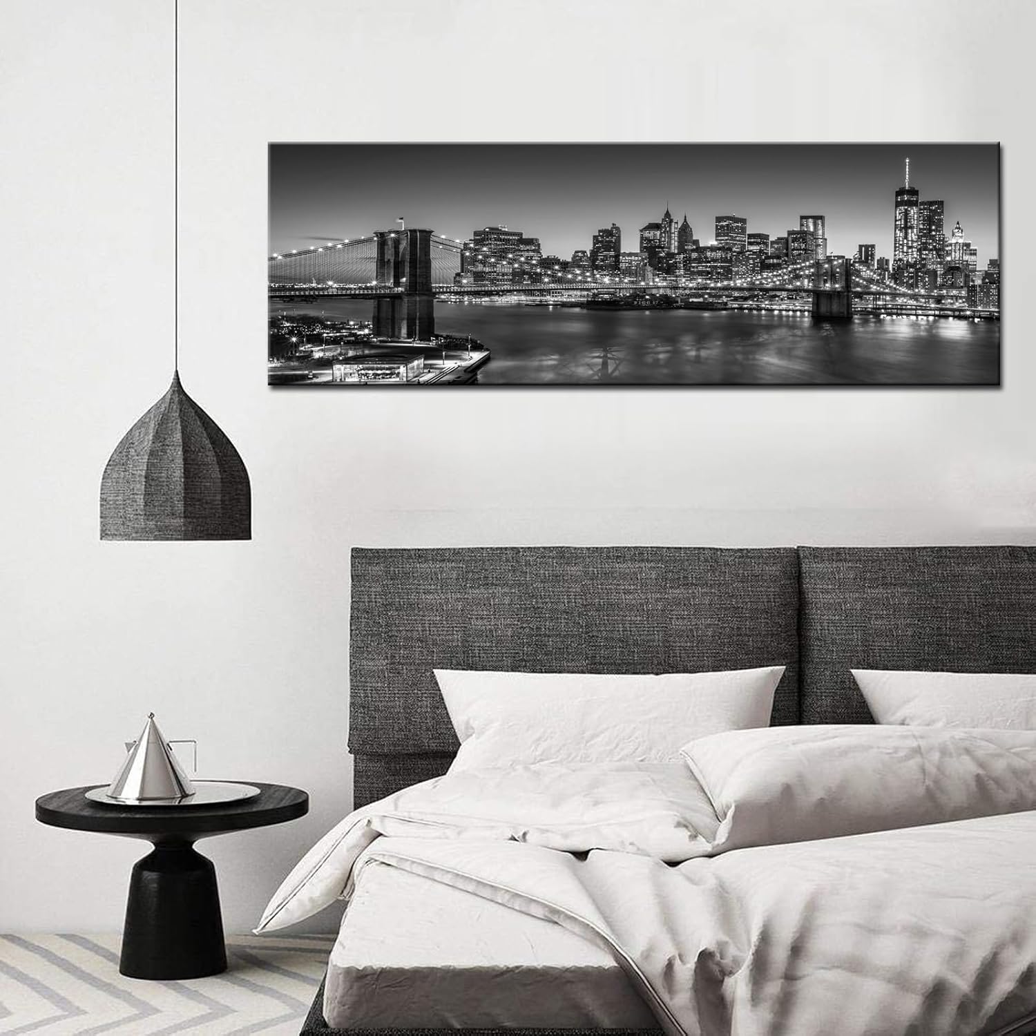 Biuteawal - Black and White Brooklyn Bridge Canvas Wall Art New York City Picture Print Manhattan Night Skyline Painting on Canvas Modern Home Office Wall Decoration Ready to Hang