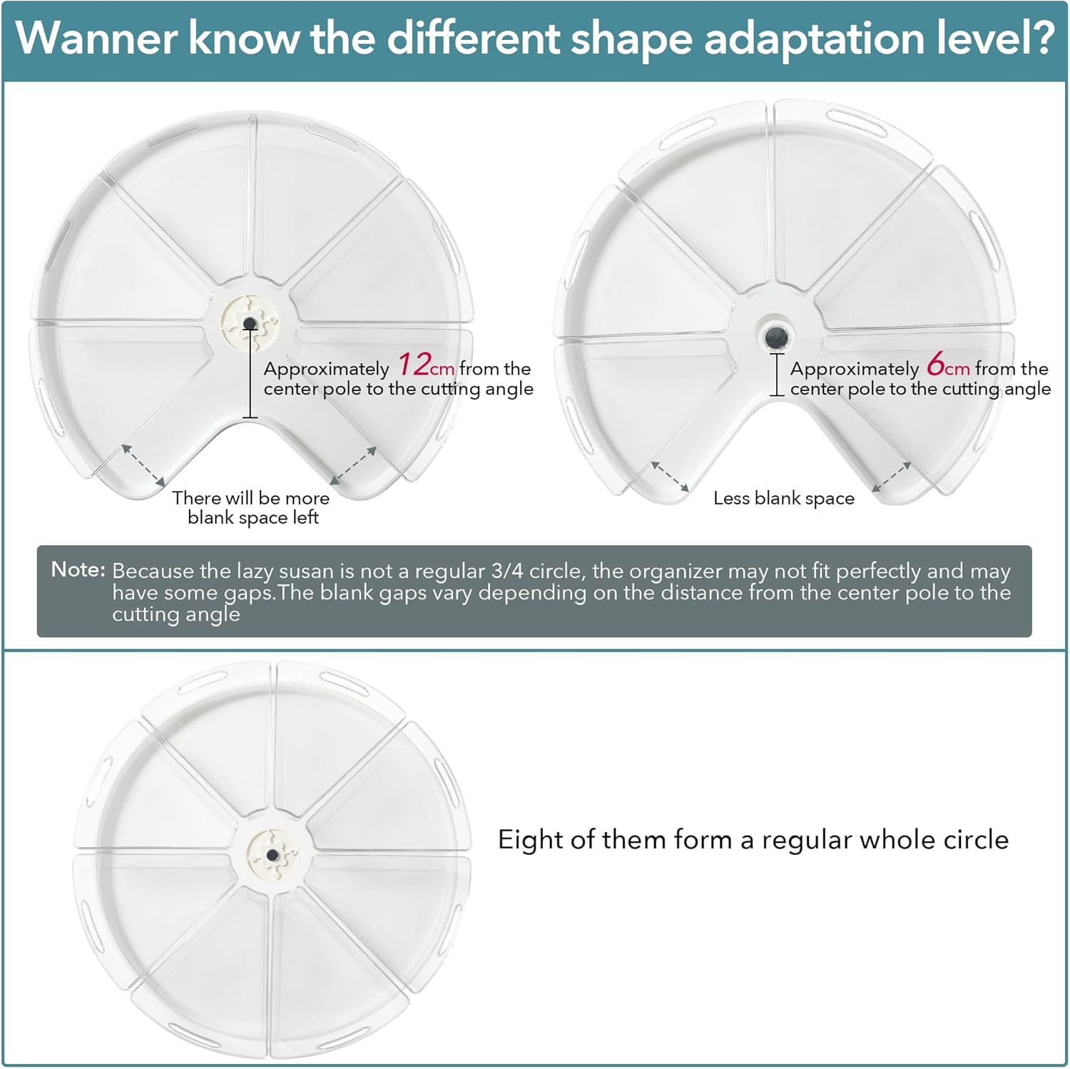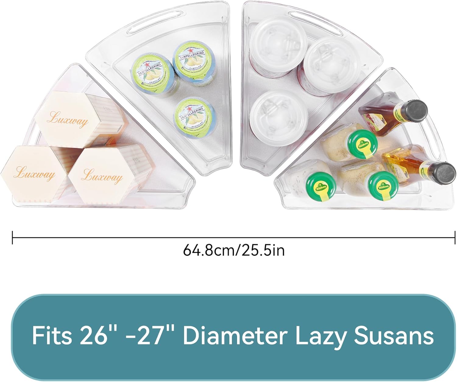 - SUITABLE SIZE: Without Labels; The 1/8 wedge-shaped condiment container can fit different size of food while neatly organized them in places. It comes in a set of 4 pieces and is most suitable for 26"- 27” diameter corner cabinet