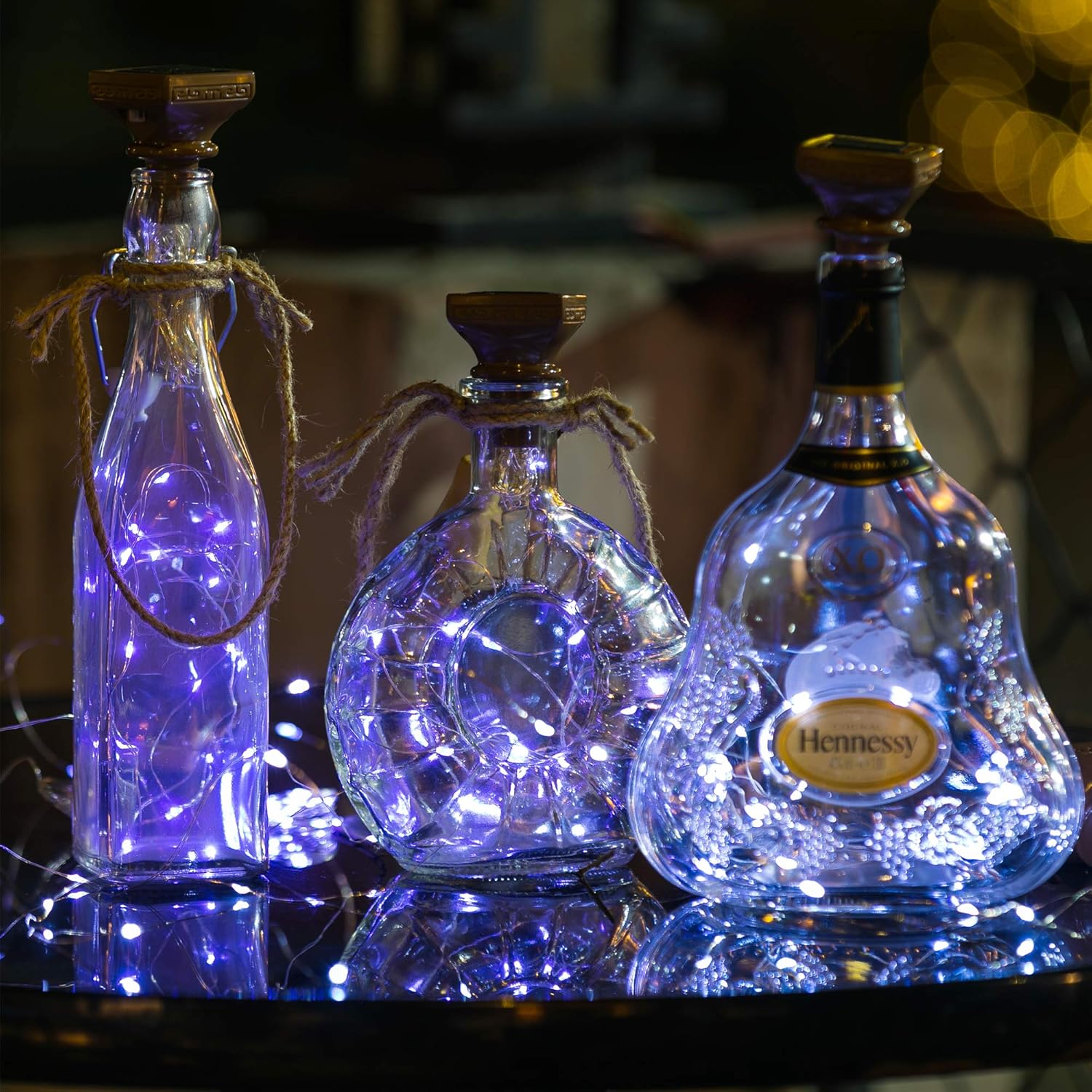 - Easy To Use and Install -- Each Cork with an ON/OFF Switch. Our bottle lights are easy to fit into the top of the wine bottle. You don't have to drill a hole in the bottle. Just Simply Switch on the Lights and then insert in the bottles. A built-in light sensor ensure that it turns on at dusk and turn off by dawn automatically
