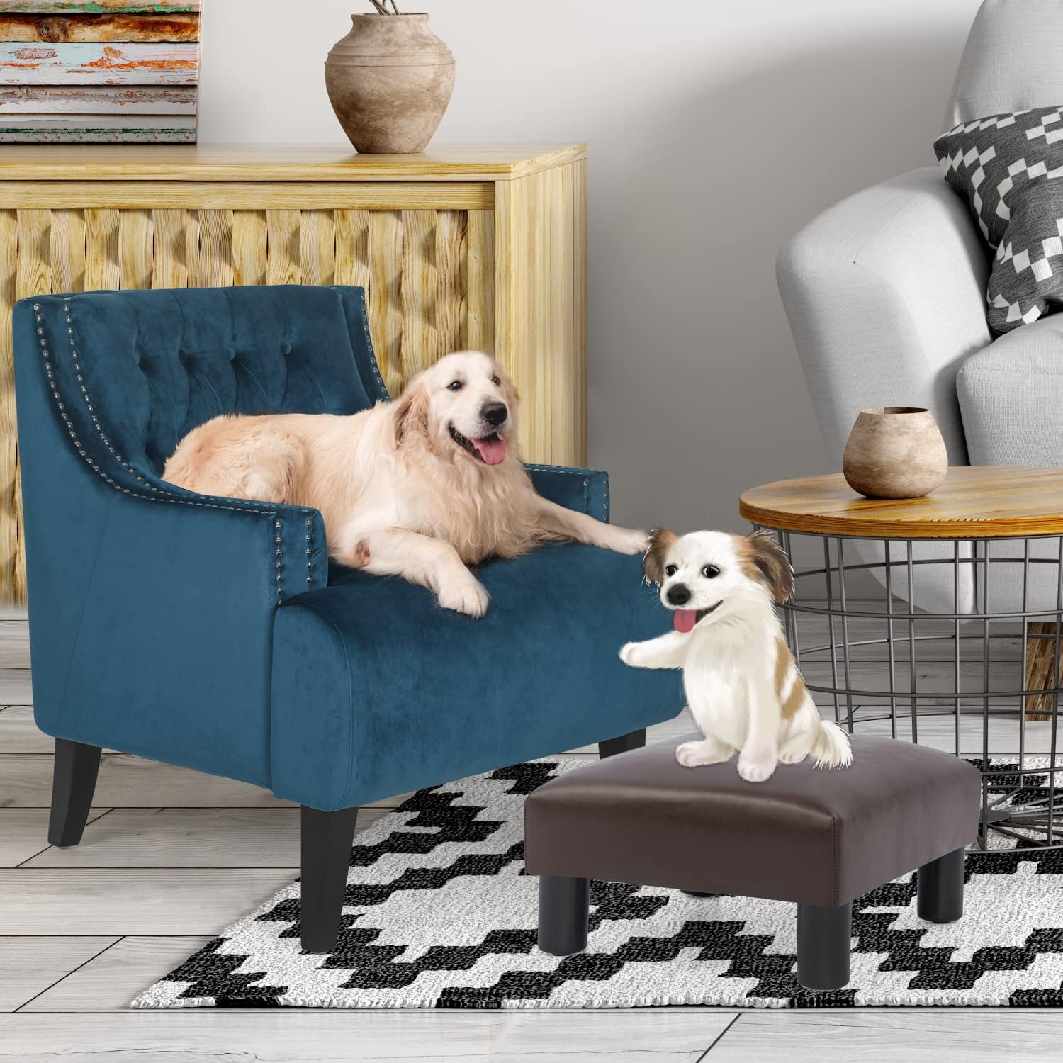 Joveco Small Foot Rest Stool Ottoman, 15" Leather Footrest Square Footstool with Non-Skid Plastic Legs, for Chair, Under Desk, Office, Living Room, Brown
