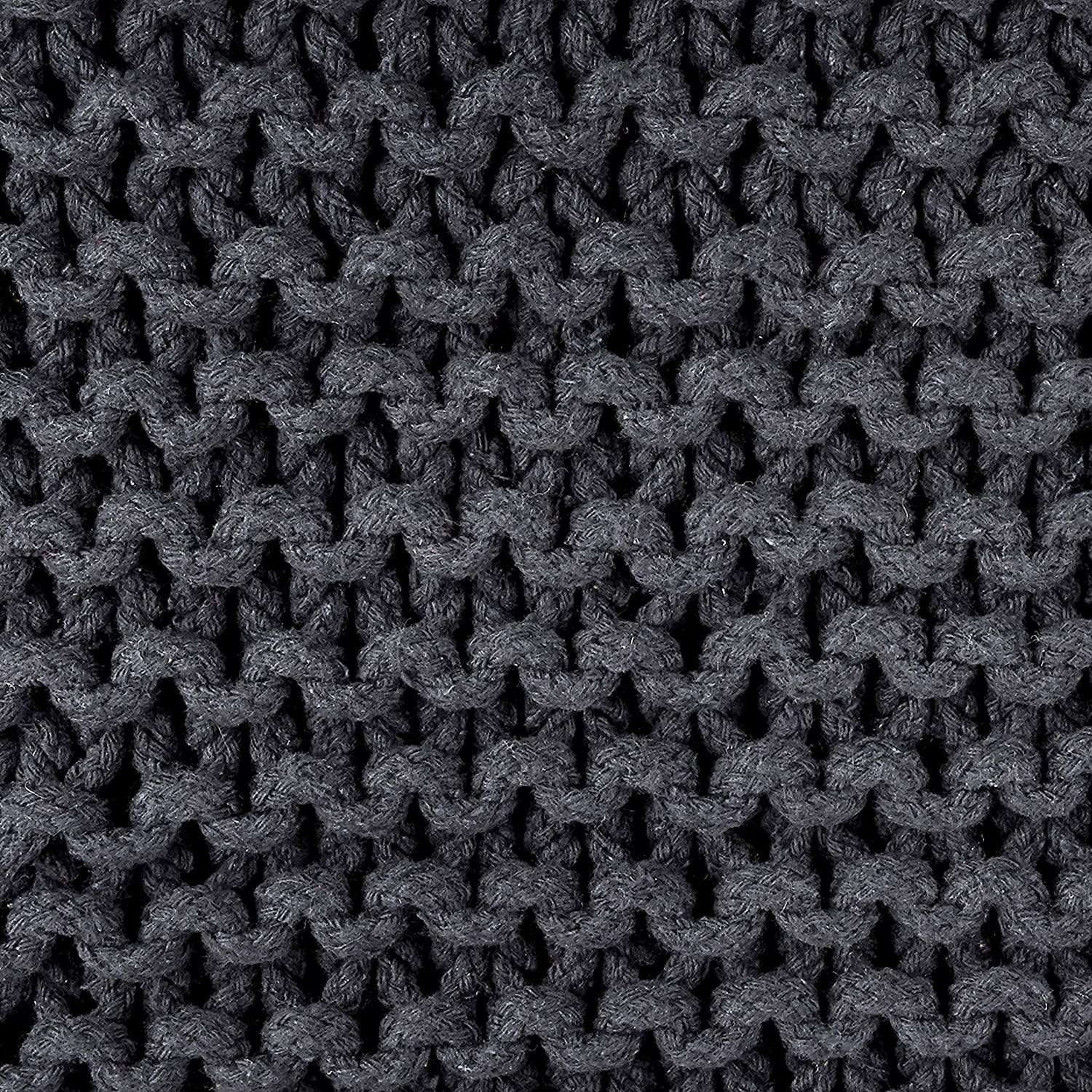 - HANDMADE FROM THE FINEST MATERIALS: The outer material on this eye-catching pouf ottoman is made from 100% cotton chord knitted in a unique pattern and filled with thermocol block inserts. Each floor pouf measures 16x16x16 inches and is handmade by our talented in-house artisans. This floor pouf is perfect when you need to rest your leg