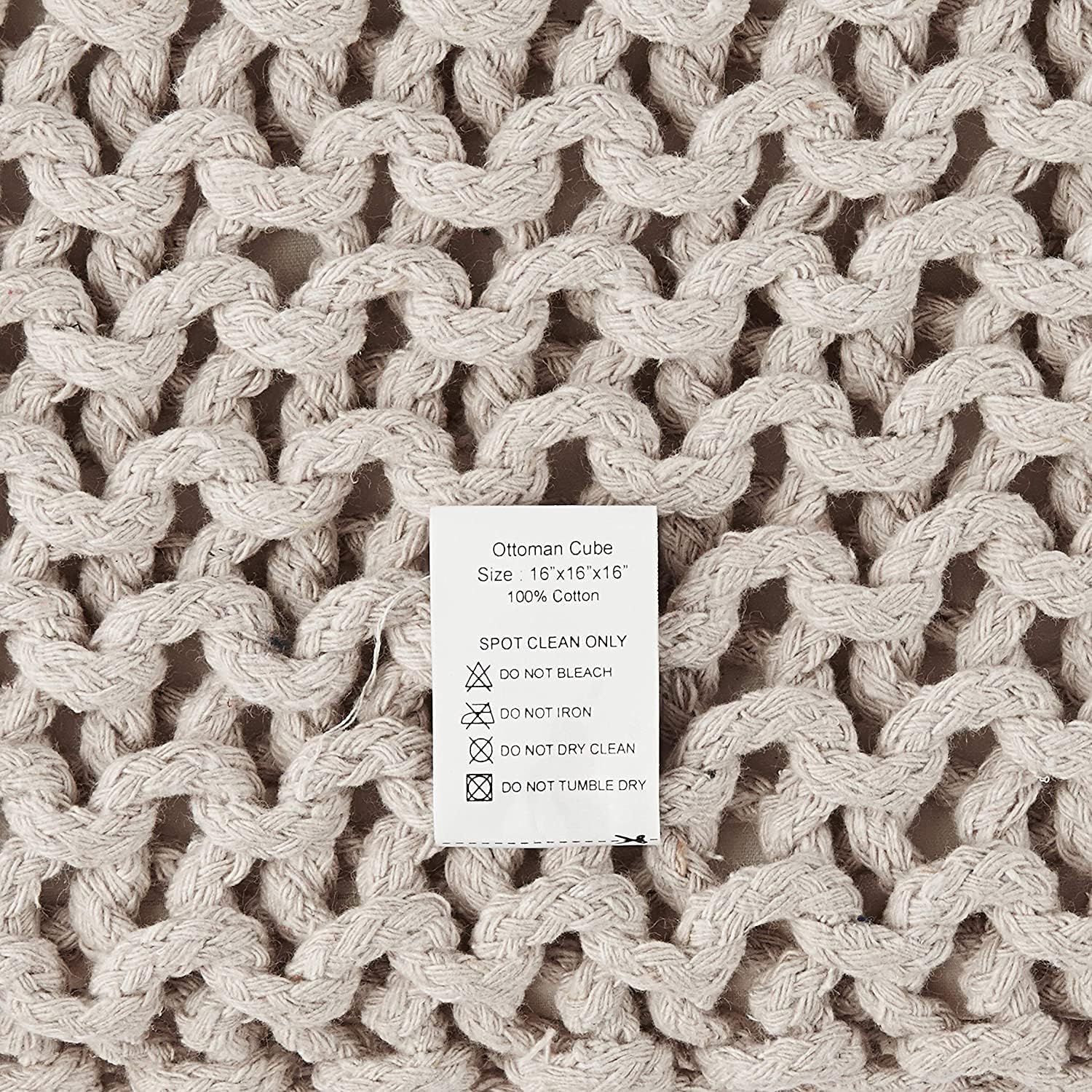 - HANDMADE FROM THE FINEST MATERIALS: The outer material on this eye-catching pouf ottoman is made from 100% cotton chord knitted in a unique pattern and filled with thermocol block inserts. Each floor pouf measures 16x16x16 inches and is handmade by our talented in-house artisans. This floor pouf is perfect when you need to rest your leg
