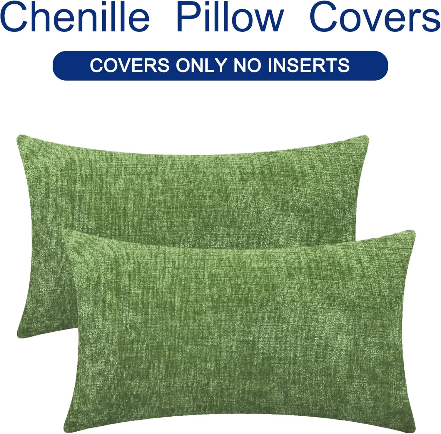 CaliTime Throw Pillow Covers Decorative 12 X 20 Inches Pack of 2 Cozy Chenille Cushion Cases for Couch Sofa Bed Living Room Home Forest Green