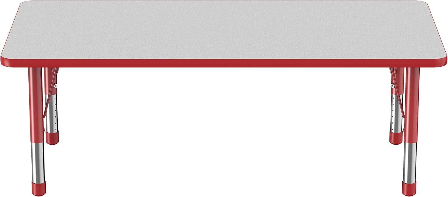 Factory Direct Partners FDP Rectangle Activity School and Classroom Kids Table (30 x 60 inch), Toddler Legs, Adjustable Height 15-24 inches - Gray Top and Red Edge
