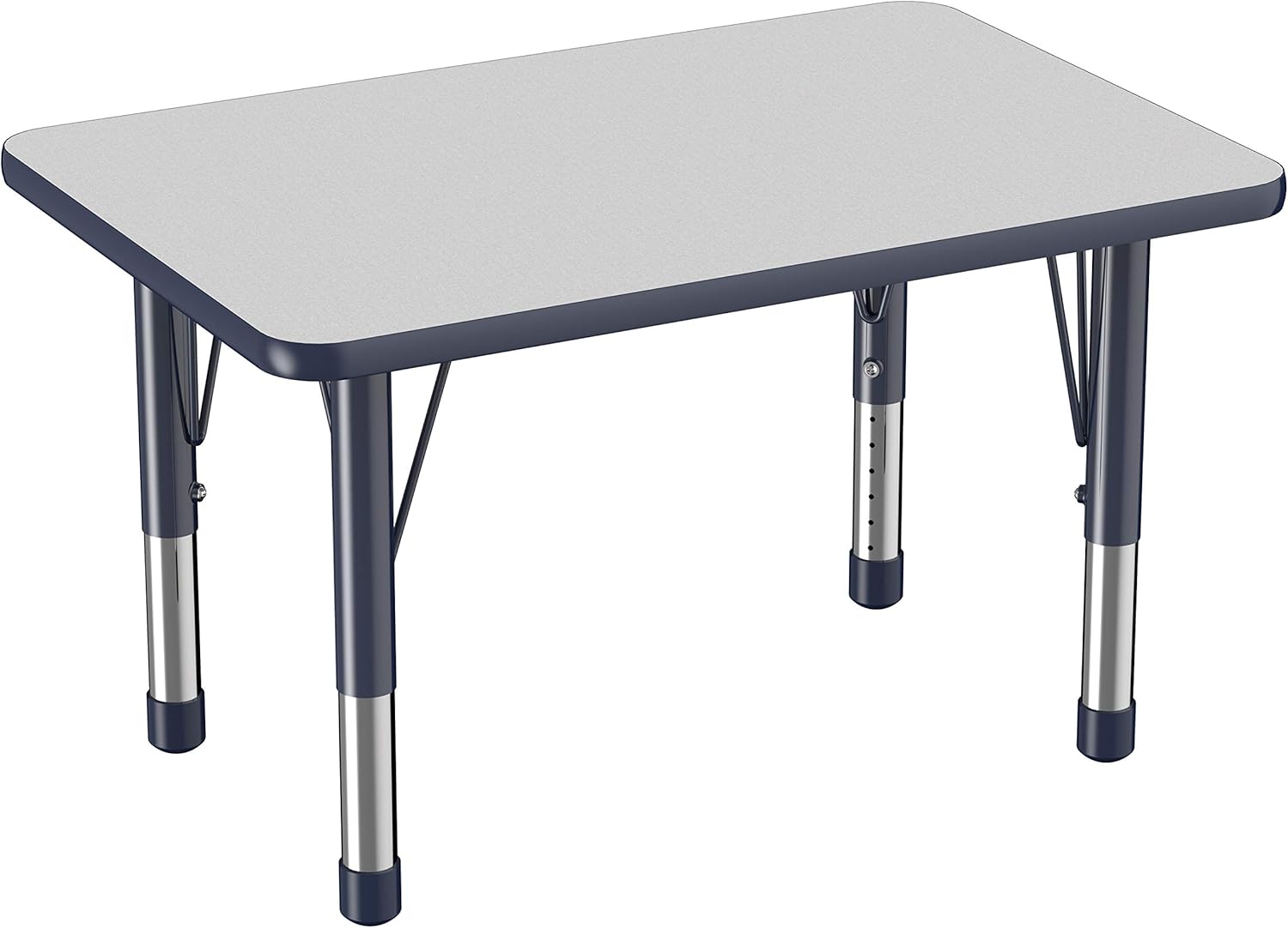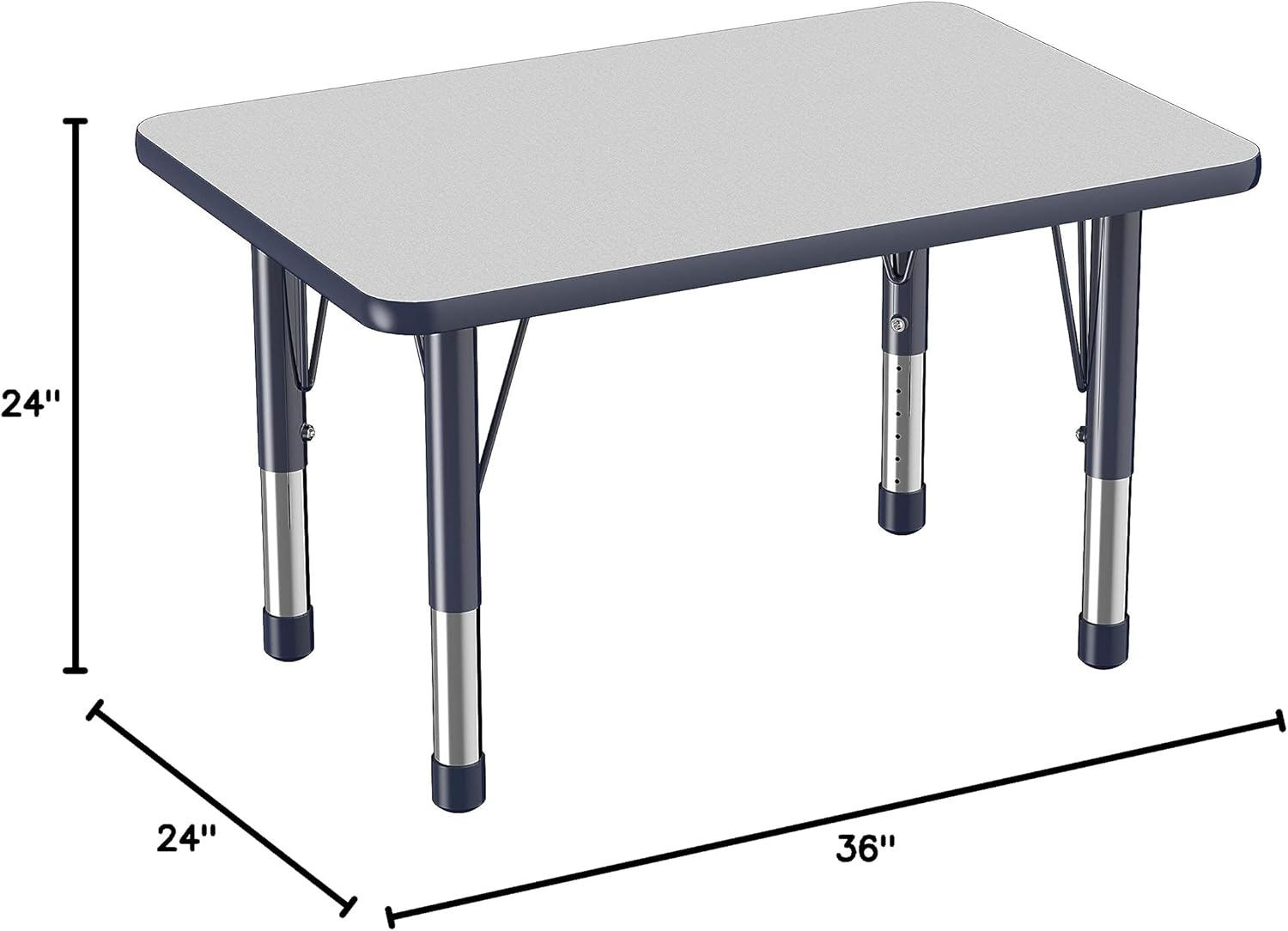 FDP Rectangle Activity School and Classroom Kids Table (24 x 36 inch), Chunky Toddler Leg, Adjustable Height 15-24 inches - Gray Top and Navy Edge