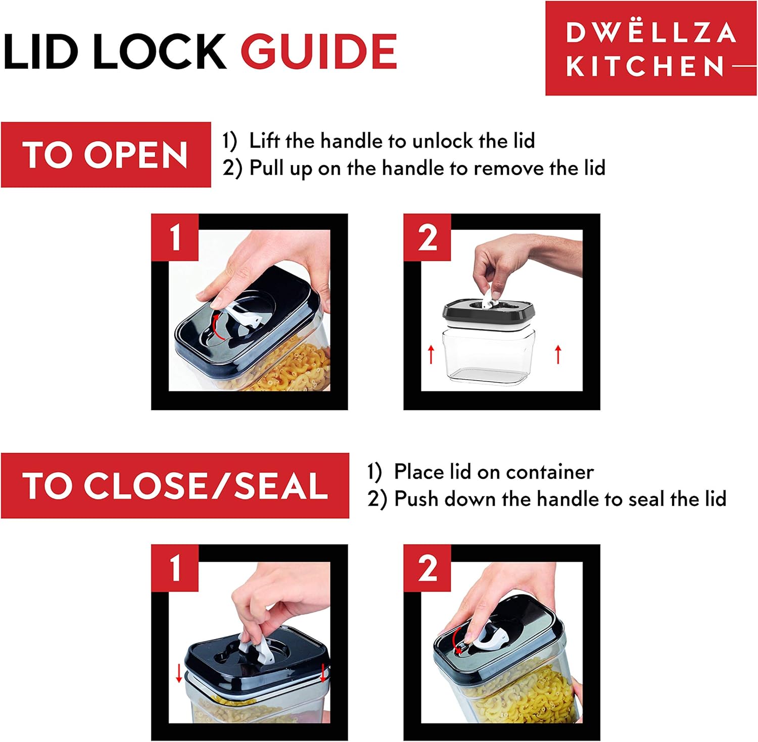 - Enjoy Your Meal With Fresh Food: Keep your foods fresh with our very easy to use airtight lid-lock mechanism. No dealing with flimsy pumps. Our food storage containers create an airtight seal by simply pushing down the ring on the lid. Lift the ring and push up whenever you want to open the containers.