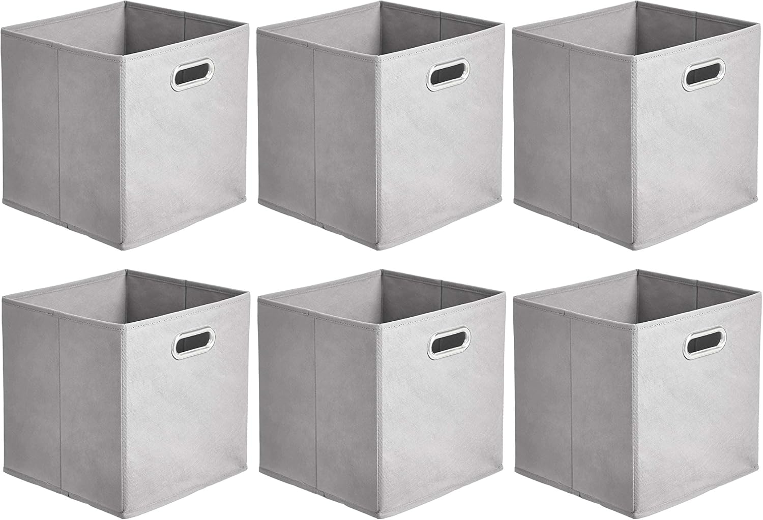 Amazon Basics Collapsible Cube Storage Organizer Bins, 6-Pack, 10.5 x 10.5 x 11 inches, Light Grey