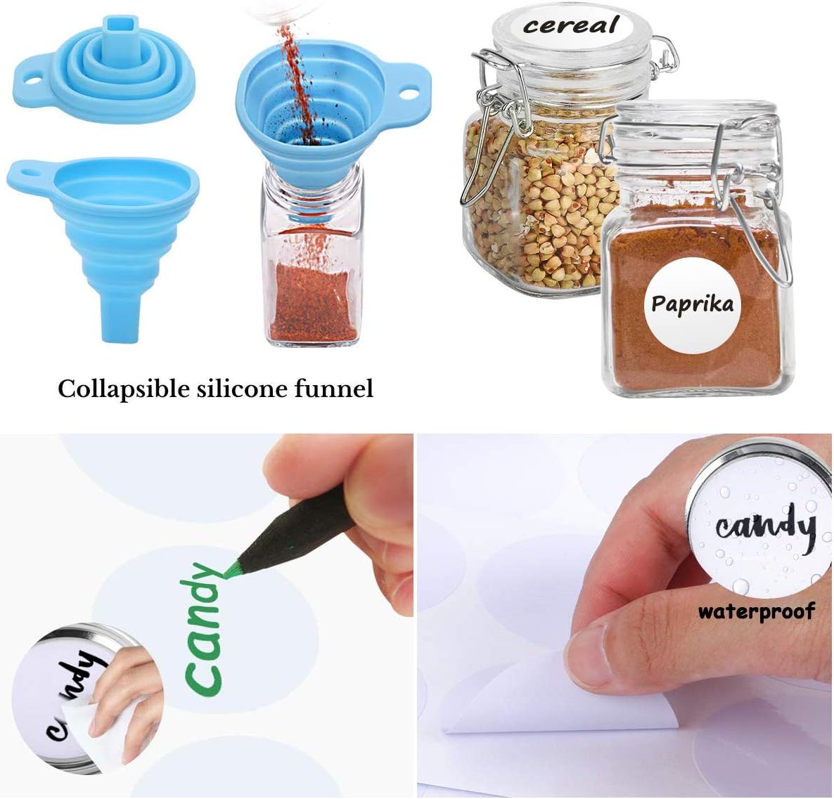 Spice Jars, 12 Pack 4oz Small Glass Jars with Airtight Hinged Lid, With 12 Spice Labels & Silicone Funnels, Airtight Glass Jars for Spices, Art Craft Storage (12 Pack)
