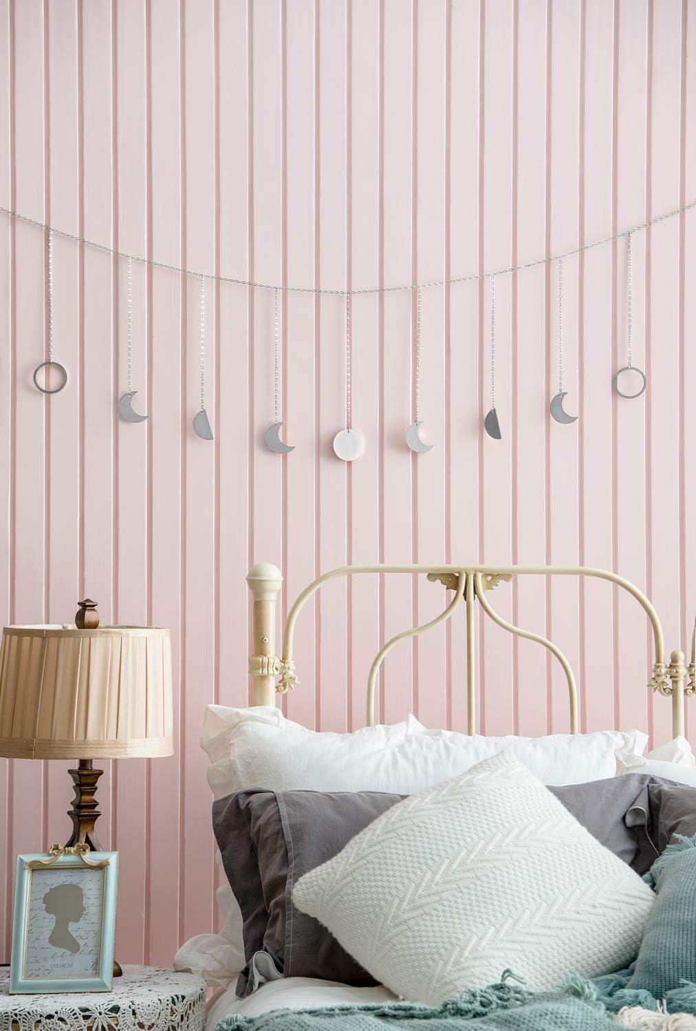 Mkono Moon Phase Wall Hanging Boho Aesthetic Room Decor Metal Moons Garland Hanging Art Bohemian Home Decoration for Girls Room Nursery Bedroom Livingroom Dorm, Ideal, Silver, 50"