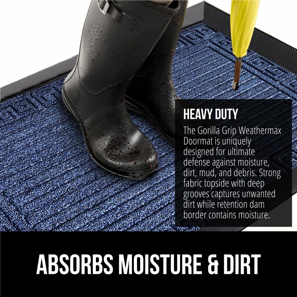 - THE ORIGINAL WEATHERMAX ALL SEASON DOORMAT: Gorilla Grip's Original WeatherMax doormat is built tough with a heavy duty, yet soft and flexible construction; deep grooves, beveled rubber border and retention dam help capture dirt, debris and moisture