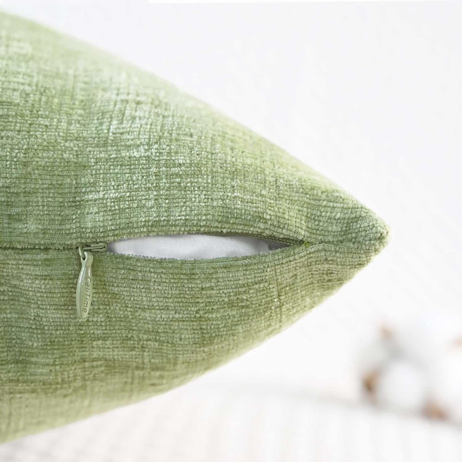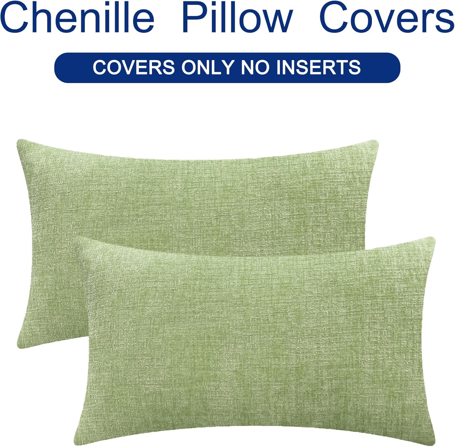 CaliTime Throw Pillow Covers Decorative 12 X 20 Inches Pack of 2 Cozy Chenille Cushion Cases for Couch Sofa Bed Living Room Home Sage Green