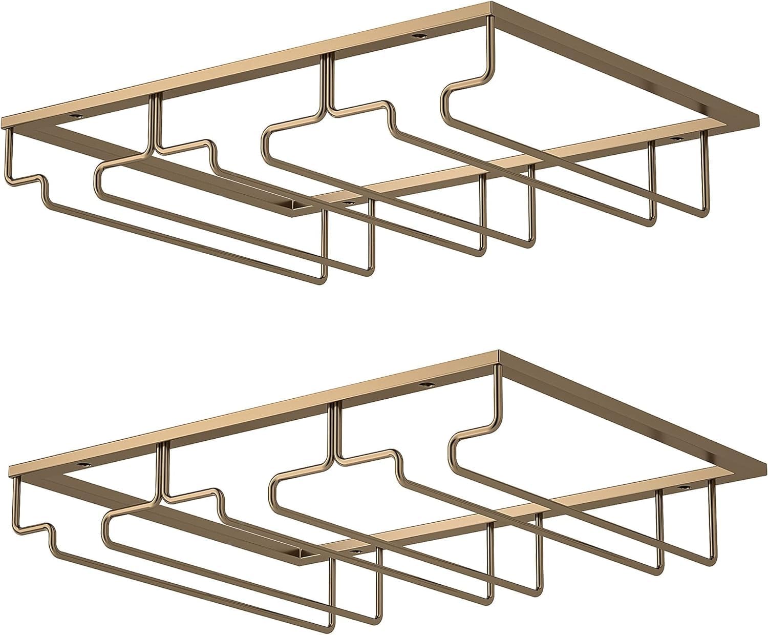 Wine Glass Rack - Under Cabinet Stemware Wine Glass Holder Glasses Storage Hanger 2 Pack Metal Organizer for Bar Kitchen Gold